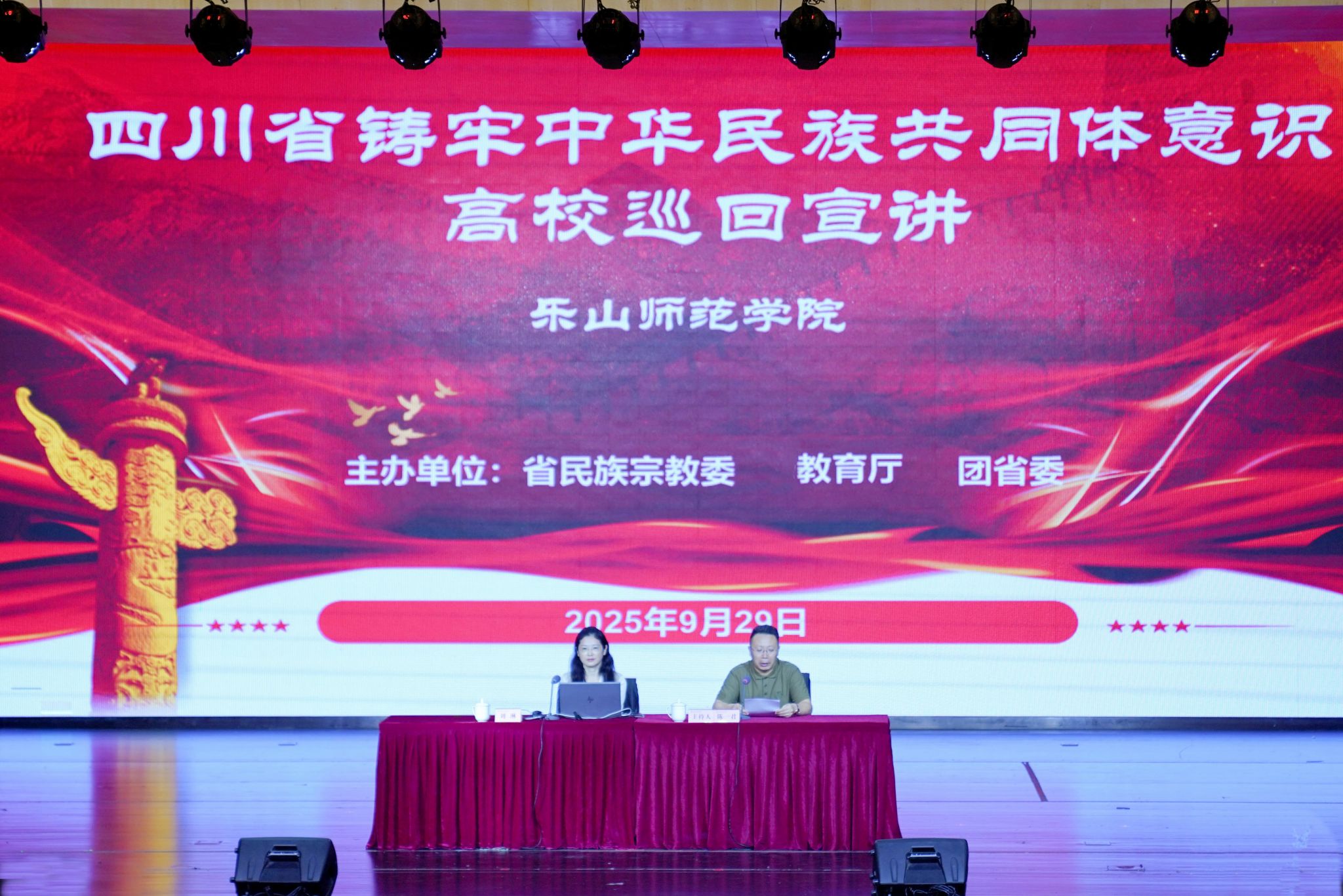 本网讯(文图/曾仁丽 孟繁增)9月29日,由省民族宗教委、教育厅、团省委主办的四川省铸牢中华民族共同体意识高校巡回宣讲在我校举行。省铸牢中华民族共同体意识高校巡回讲堂三年行动宣讲团成员、西南民族大学中华民族共同体学院党委书记刘琳教授作宣讲,校党委副书记陈一君出席并主持。全校处科级干部、统一战线工作领导小组成员单位负责人、师生代表近300人聆听了报告。