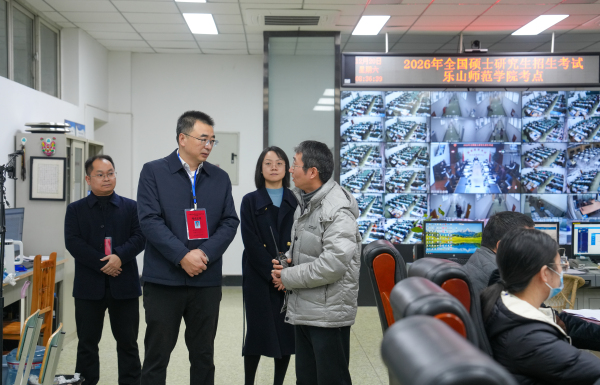为落实2026年研考强化制度约束、严守考试公平的工作要求,学校扎实推进全流程筹备工作。考前专门召开工作协调会,系统梳理考试各环节任务;严格执行考务人员“线上+线下”双培训与考核上岗制度,针对入场安检、试卷流转、应急处置等关键环节开展实地演练,确保全体工作人员熟练掌握考试规程、精准落实操作要求。考试期间,校党委副书记、校长李方裕深入考务办公室、指挥中心及各标准化考场,巡视指导考试工作。乐山市副市长廖沂在校党委副书记、纪委书记彭尚源陪同下,实地检查了考前各项准备与组织实施情况。党委常委、副校长农向参加考试期间巡视督导。