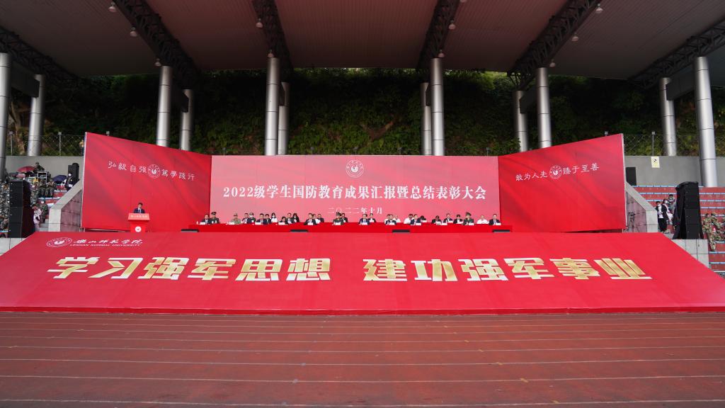 本网讯(文图/陆羽李菊贺梓鋆袁心钰袁钰佼侯伟颖刘馨怡刘宇星)在全校深入学习宣传贯彻党的二十大精神之际,10月30日,我校2022级学生国防教育成果汇报暨总结表彰大会在北校区运动场举行,5000余名新生以饱满的热情和昂扬的士气向全校师生展示了军训成果。