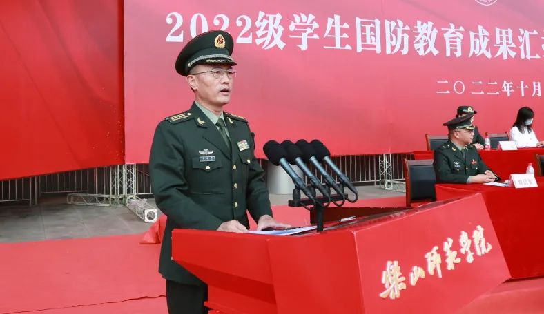 王建华大校代表乐山军分区,祝贺全体军训学员圆满完成军训任务。他说,刚才的汇报表演,同学们士气高昂、队列整齐、技能过硬,展示了当代青年大学生朝气蓬勃、昂扬向上的青春风采,体现了勇于吃苦、挑战自我的过硬作风。他希望同学们要存鸿鹄之志,为实现中国梦而奋斗;要靠拼搏立身,为实现强军梦而奋斗;要惜成才之机,为实现人生梦而奋斗。
