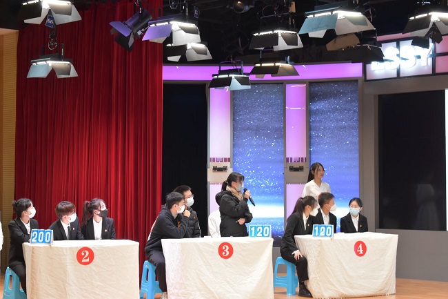 决赛由必答题、抢答题、风险题三种题型构成,内容涵盖党的二十大报告、《中国共产党党章》《中国共产党纪律处分条例》《中国共产党廉洁自律准则》、与廉洁相关的诗词、歌曲等内容。比赛现场,参赛选手们经过前期准备,从容自定,展示出了良好的理论素养。在必答题环节,各小组胸有成竹、从容不迫,轮流答题,表现优异;紧张的抢答题环节,选手们摩拳擦掌,小组内默契配合,8支队伍你追我赶,奋勇争先毫不示弱,比赛现场紧张热烈而精彩纷呈;风险题环节可谓险象环生,选手们审时度势,灵活选择风险分数,有的队伍放手一搏,实现积分反超;有的小组则稳中求胜,稳固得分基本盘,当出现听歌识曲、诗词等题型时,场下阵阵掌声,呈现了一轮又一轮精彩的对决,将比赛氛围推向高潮。比赛期间还穿插了两轮观众答题环节,同学们积极参与,踊跃答题,充分彰显了乐师学子过硬的知识储备。