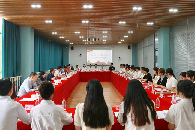 本网讯(文/汪鑫怡 图/林宏伟)6月7日下午,学校召开2023届毕业生代表座谈会暨毕业生党员代表“共话廉洁”座谈会,校党委书记胡丹,校党委副书记、校长刘进,省纪委监委驻乐山师范学院纪检监察组组长、党委副书记、纪委书记彭尚源,副校长陈范华,副校长李朝晖,副校长汪天飞,副校长江滔及30位毕业生代表参加了座谈会。会议由党委学生工作部部长黄显刚主持。