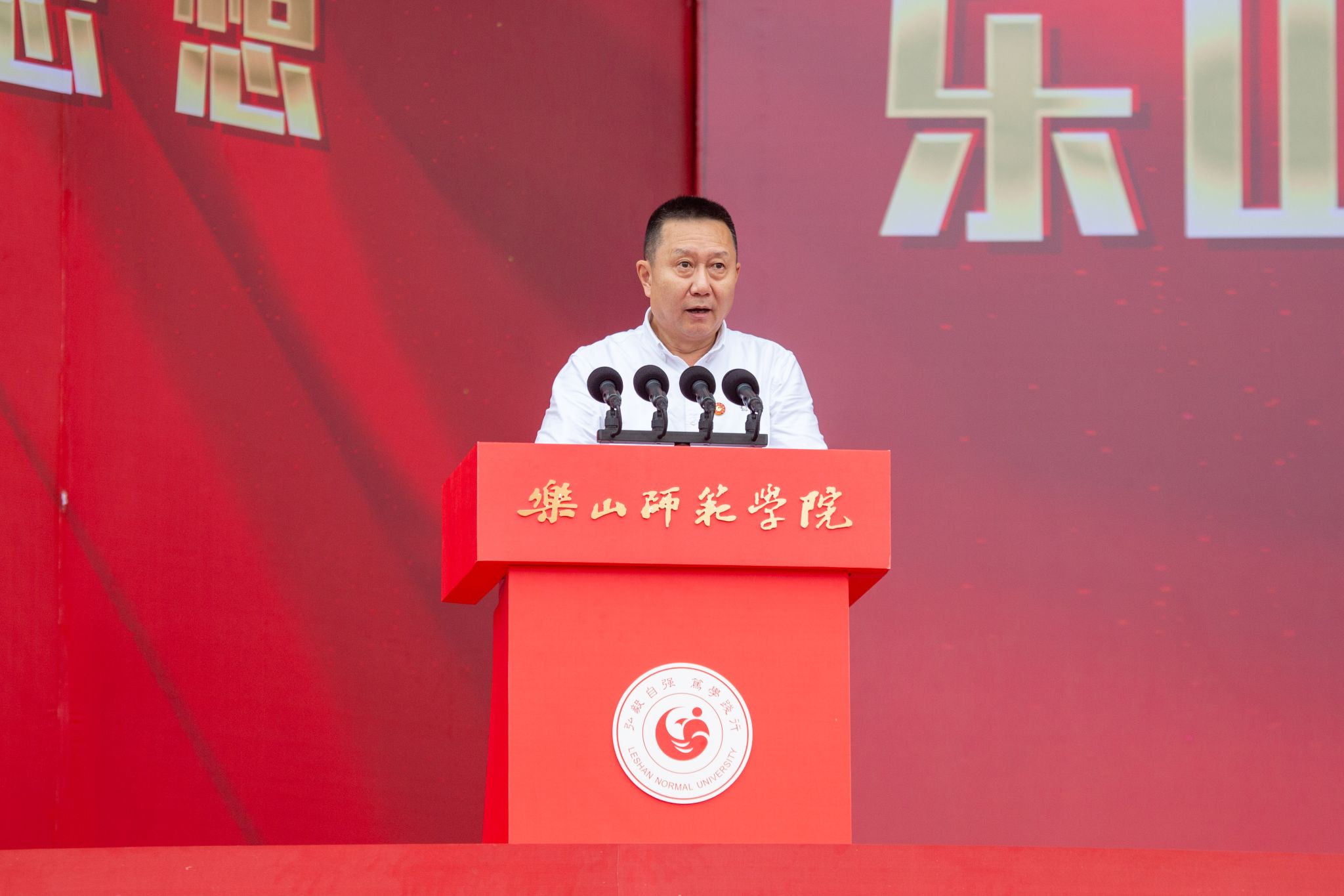 学校党委常委、副校长汪天飞作军训总结,他在总结中祝贺同学们在军训中锤炼了军事技能、勇敢精神、坚韧意志和作风纪律;感谢连日来辛勤付出的教官们发扬“退役不退志、退伍不褪色”的优良传统和作风,按照计划圆满完成训练任务;向长期以来支持我校国防教育工作的乐山军分区、乐山市市中区人民武装部首长们表示衷心的感谢。他向同学们提出了几点希望,一是希望同学们继续发扬和巩固军训成果,学习军人的勇敢与忠诚,把在军训中展现的精神风貌延续到今后的学习、工作与生活中;二是希望同学们牢记刘进校长在开学典礼上的深情寄语和谆谆教诲,勇敢面对未来的困难和挑战;三是希望同学们弘扬“敢为人先,臻于至善”的乐师精神,争做新时代的开创者、建设者和奋进者,为中华民族伟大复兴贡献青春力量!