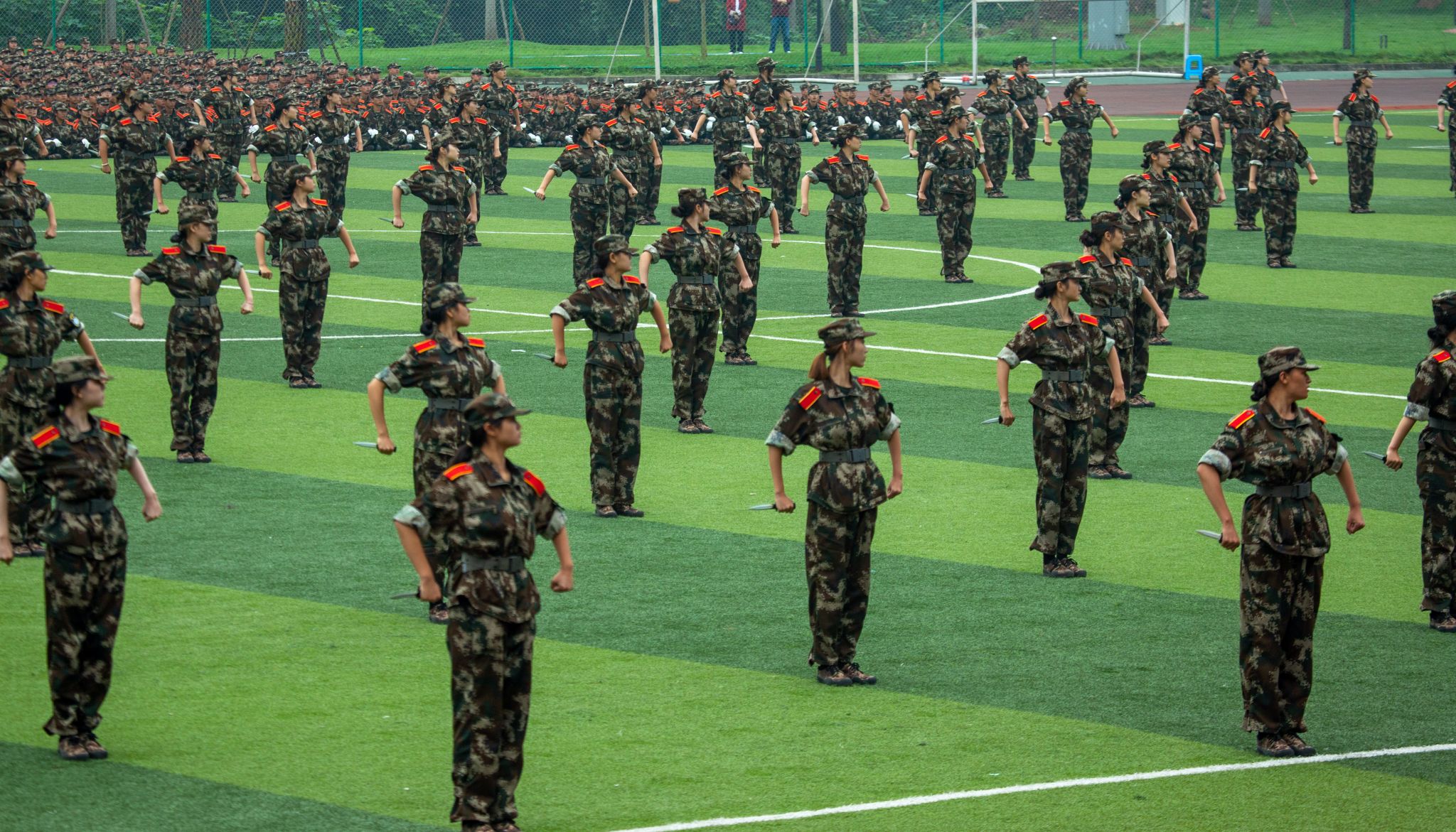 红旗飘扬,国歌嘹亮。校旗飞舞,青春激昂。迷彩青春扬斗志,意气风发少年行。一声令下,分列式开始。雄壮激昂的音乐响起,3971名新生踏乐而来,英姿飒爽,步履铿锵。