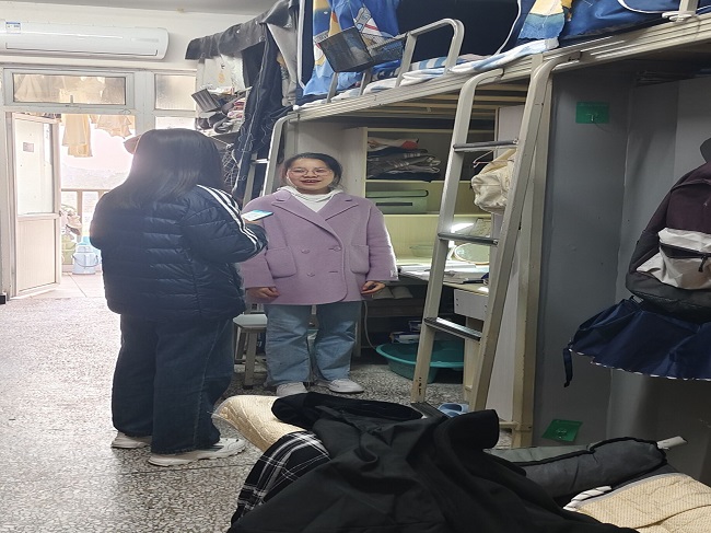 本网讯(文/何俊洁 图/杨梦瑶) 为了更好的了解学生宿舍情况和排查宿舍安全隐患,提高消防安全意识,2023年12月7日下午,生命科学学院开展了寝室安全和卫生检查。