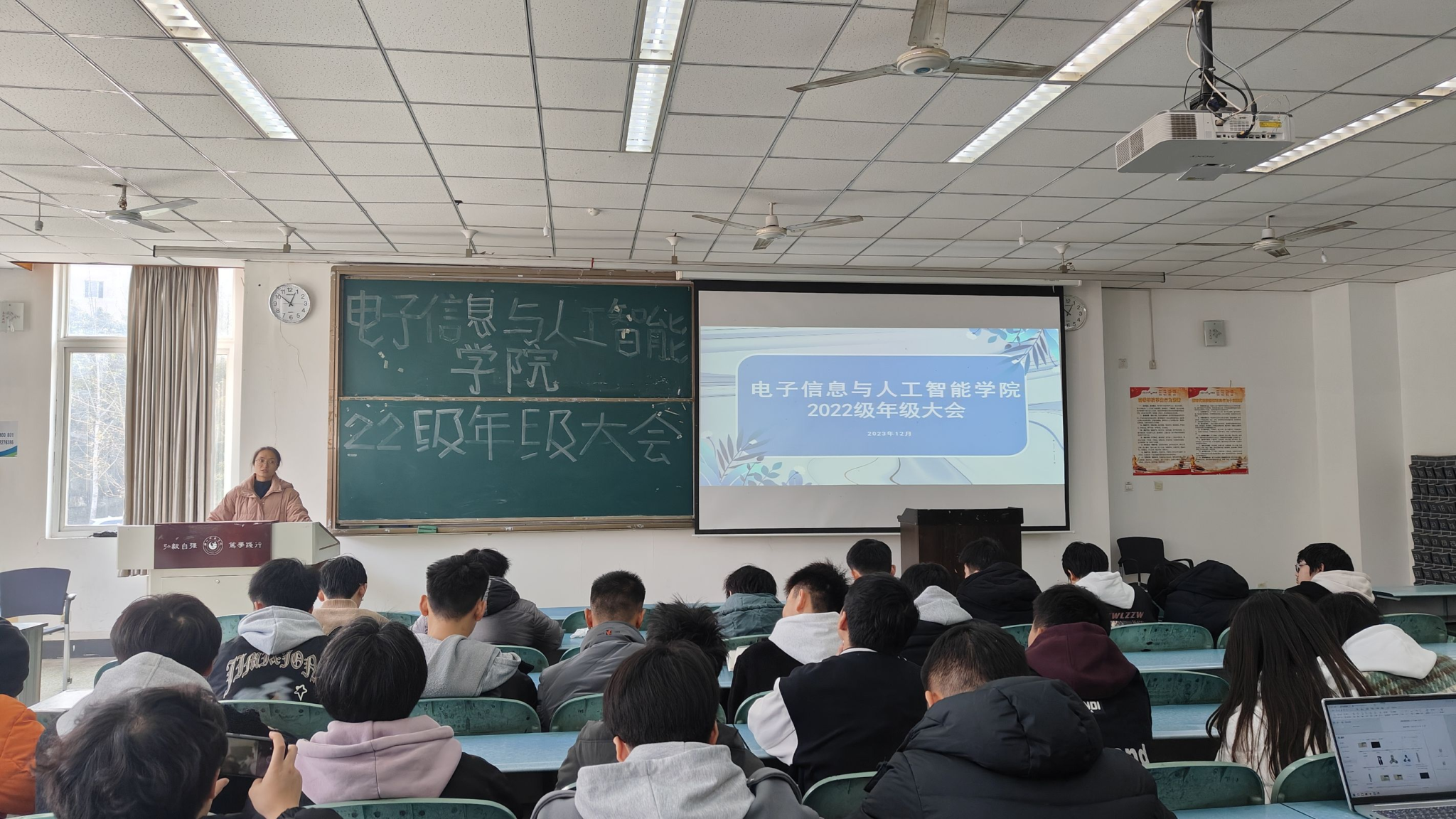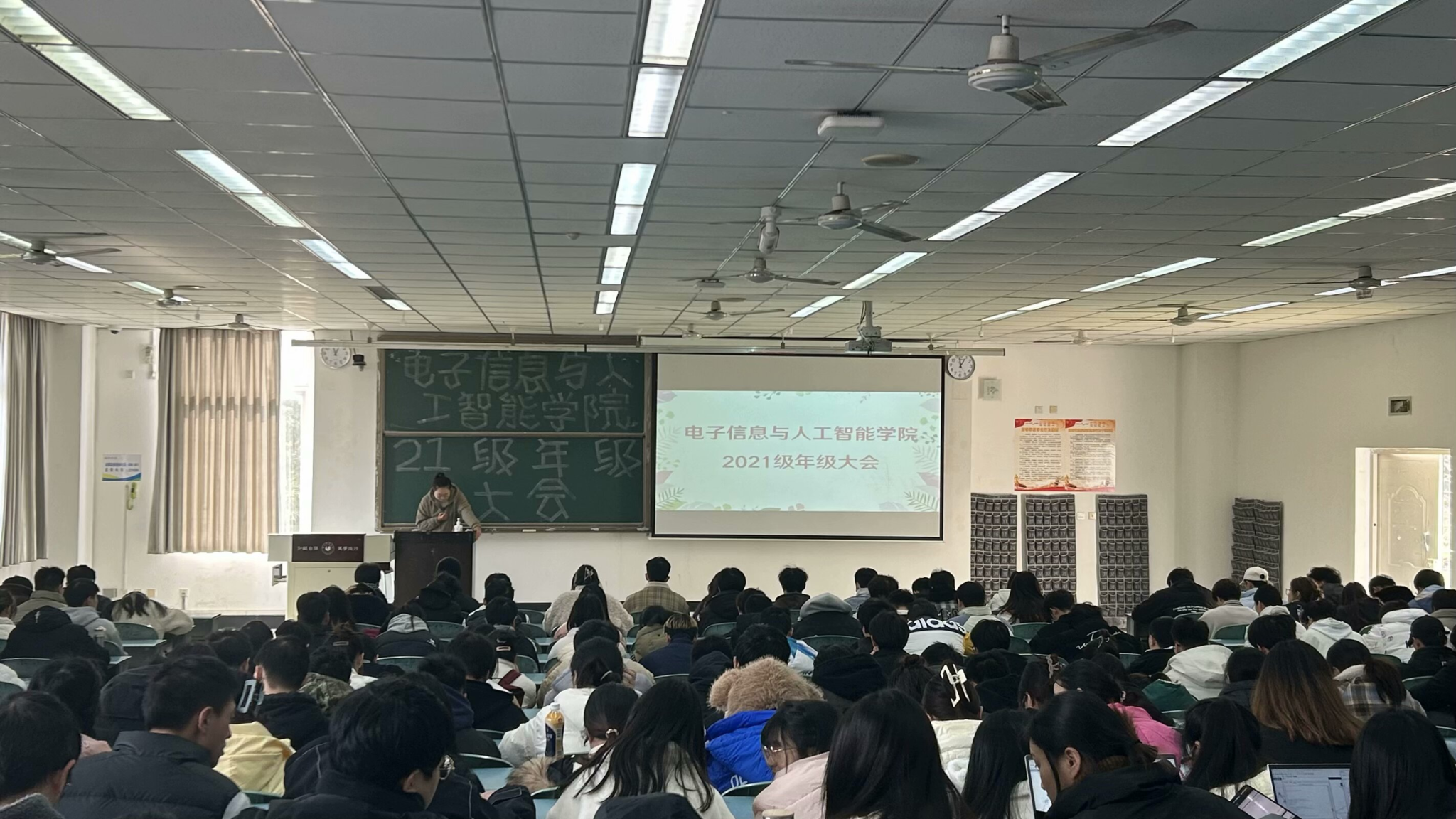 本网讯(文/张莎莎 图/杨茗越)近日,电子信息与人工智能学院在行知楼101、125、201、特教A多功能厅召开了21级、22级、23级年级大会。会议旨在加强考风考纪教育,增强学生安全意识。本次会议由电子信息与人工智能学院辅导员雷雄锴、肖苗、狄红霞主持,21级、22级、23级全体同学共同参与。