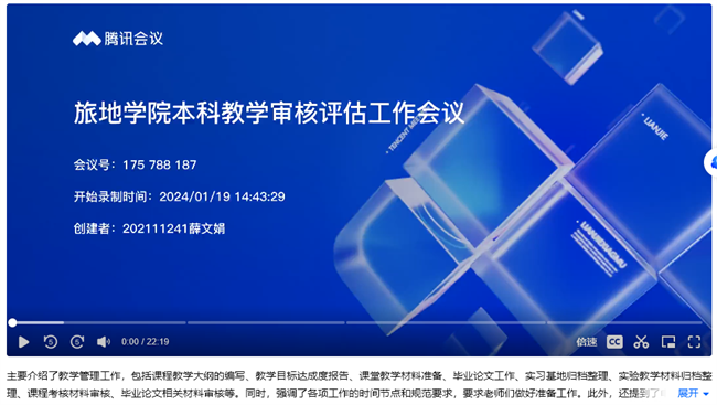 本网讯(文、图/薛文娟)1月19日下午,旅游与地理科学学院召开本科教育教学审核评估工作部署推进会,学院全体教师在线出席。会议由学院党委副书记、院长郭剑英主持。