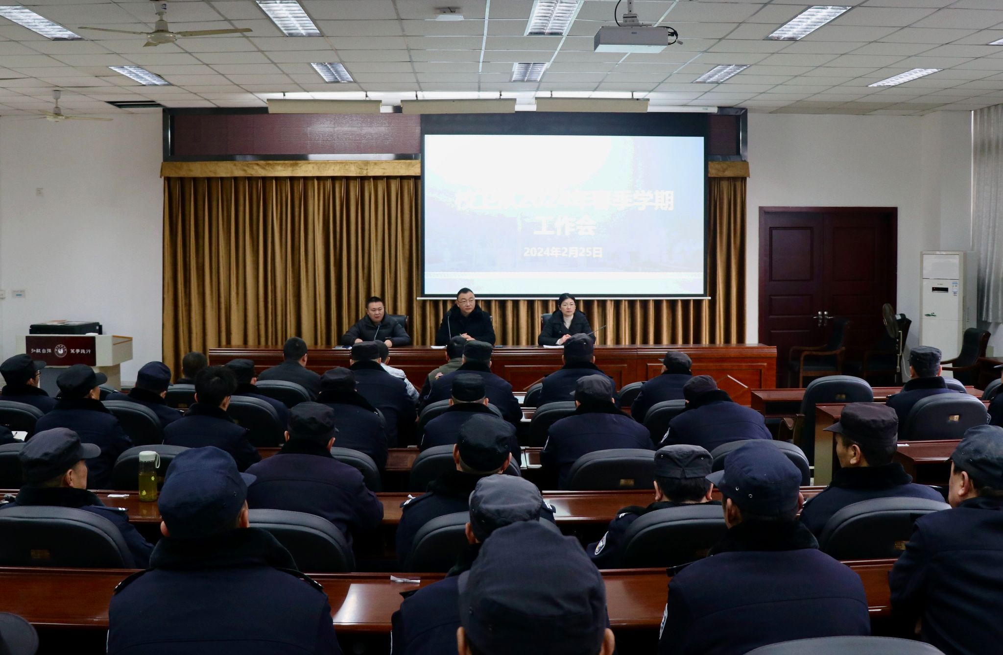 本网讯(文图/薛小丽)2月25日,学校保卫处在弘毅楼312会议室召开春季学期工作会,保卫处处长贾洪鉴、副处长罗智勇、刘艳萍,安全保障中心、全体校卫队员参加了会议,会议由罗智勇主持。