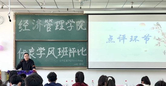本网讯(文/何思逸 图/吴双 洛亚)3月21日下午,经济管理学院优良学风班评比活动在行知楼425举行。经济管理学院分团委书记王东健、2022级辅导员陈聪、2023级辅导员金蓉、分团委副书记陈玉婷、学生分会主席陈佳怡等作为评委参加了本次活动,2021级、2022级所有班级参与了本次评比。