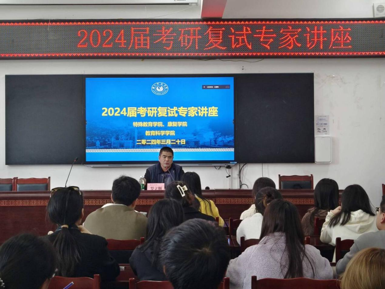 本网讯(文/朱梓菡 图/山劲飞、邹佳丽)3月20日下午,教育科学学院和特殊教育学院(康复学院)在特教A栋406室举行考研复试指导讲座,教育科学学院党委书记罗立顺主讲,两学院2024届考研学生参加。