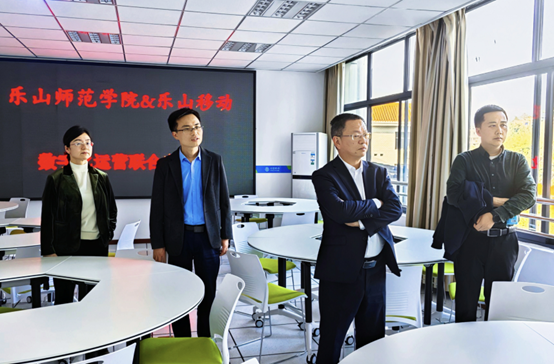 邓健院长对吴超教授表示感谢,并指出乐山移动公司与经济管理学院新共建数字化运营的实验室,后续还将成立中国移动的精英班,联合培养高素质的数字化的管理人才,开展校企合作,促进产教融合。随后,与会人员一同前往实训楼数字化运营联合实验室参观考察。