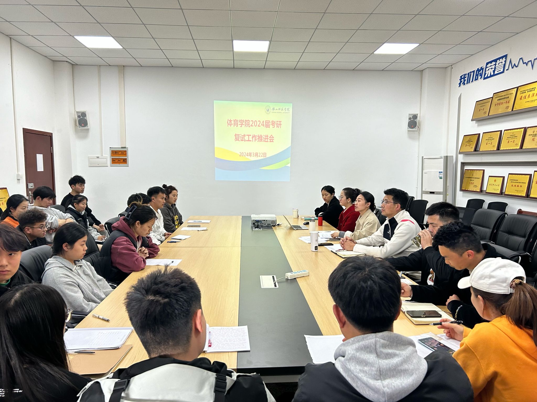 本网讯(文/吴思琪 图/黄梁)3月22日,体育学院在305会议室召开2024届考研复试工作推进会,学院党委书记钟大勇、副院长黄河、党委副书记王美、副院长张爱平、复试专业指导老师杨佳英、石曼曼、杨丹,全体考研复试同学参会,学生管理办公室主任关光富主持会议。