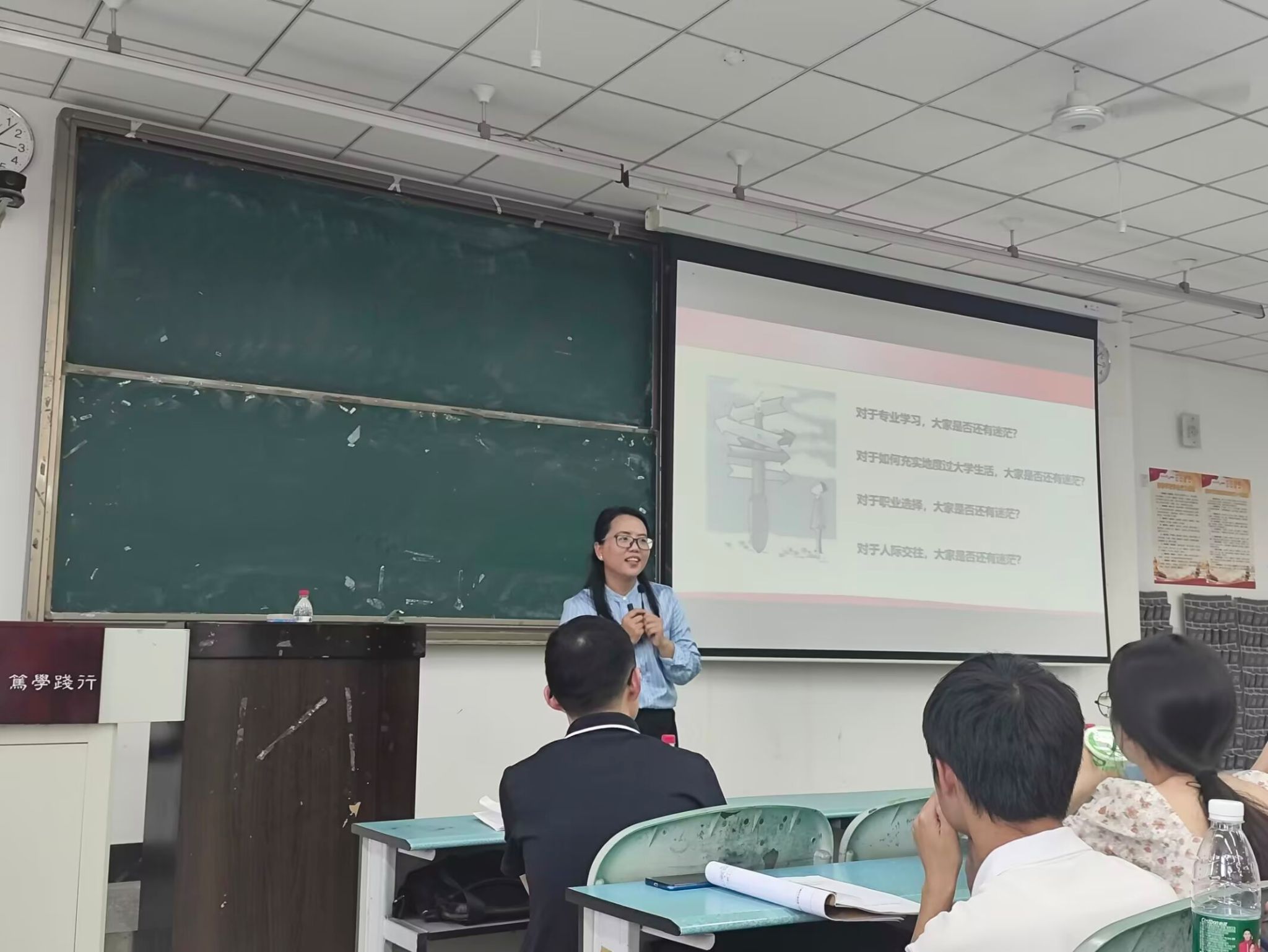 本网讯(文图/杨欣渝)为了增进马克思主义学院学子对思想政治教育专业的认识,树立学科自信,以更好规划个人的职业生涯。5月22日,马克思主义学院于行知楼225教室开展以“树立学科自信、夯实学科基础、做好职业生涯规划”为主题的讲座。本次讲座由西南石油大学马克思主义学院副院长张莉主讲,赖伟副院长主持,马克思主义学院思想政治教育专业2022级、2023级全体学生参与。