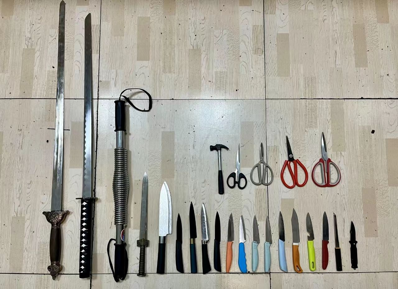 此次检查分为四个小组,分别深入学校男生苑、桂苑、学9栋、学10栋等男生宿舍进行了详细检查。检查中,检查组严格按照“全覆盖、零容忍”的要求,对宿舍内的床铺、储物柜、抽屉等可能存放管制刀具的地方进行了全面、细致的检查。在检查中共收缴各类管制刀具20余件。同时,向学生讲解了私藏、携带管制刀具的危害性,提高广大学生对非法携带管制刀具违法性、危害性的认识,强化了学生的思想教育、法制教育和安全防范教育,进一步提高大家守法意识和自我防范意识,杜绝校园管制刀具违法行为的发生。