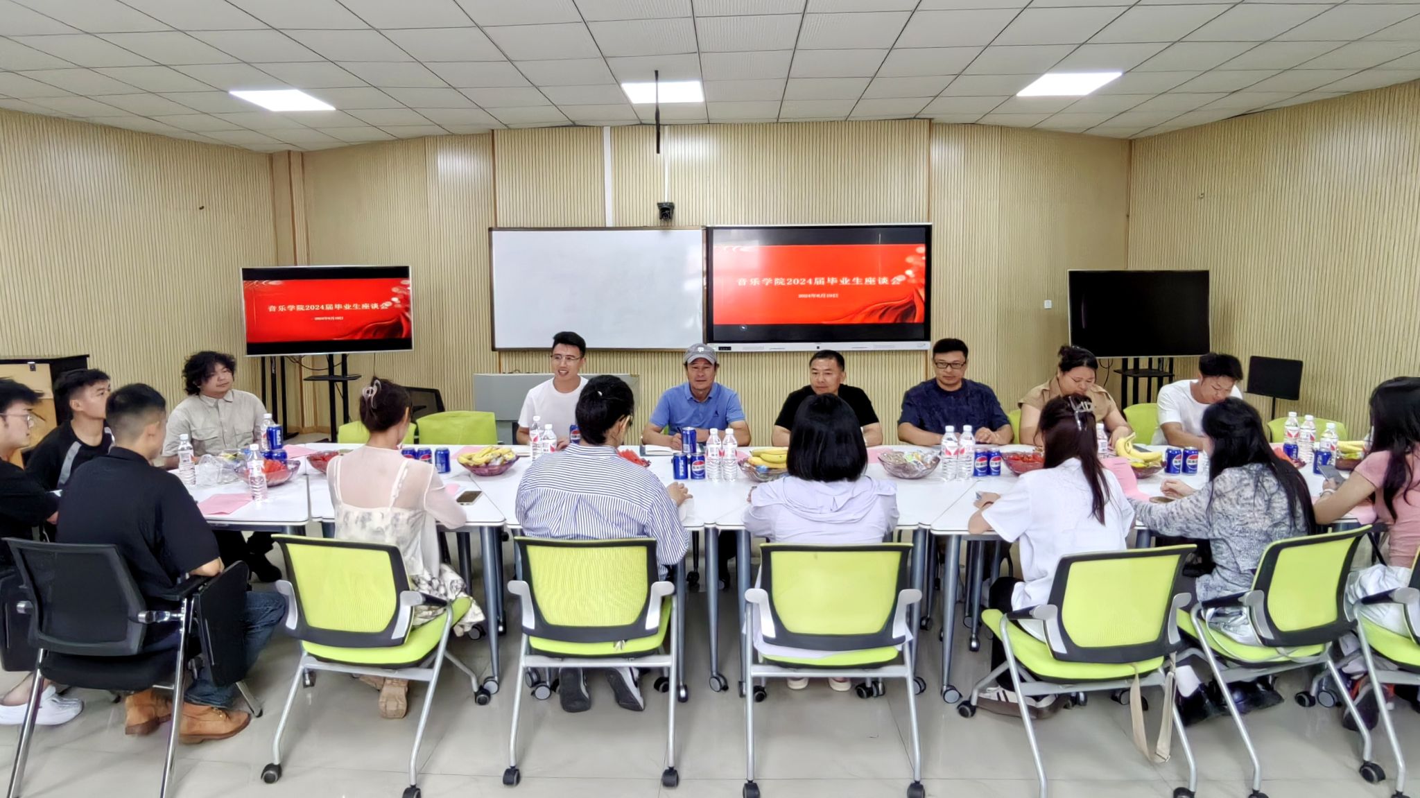 本网讯(文图/李志翔)6月19日,音乐学院在学院智慧教室召开了2024届优秀毕业生座谈会。音乐学院党委书记宋军、院长周特古斯、副院长吴映春、学生工作办公室副主任周琼怡、2024届毕业生辅导员郭元红以及2024届优秀毕业生代表参加此次会议,会议由郭元红主持。