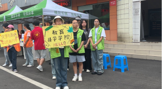 在迎新过程中,校园里洋溢着浓厚的欢迎氛围,从校门口到迎新大本营,处处可见精心布置的迎新展板、横幅和标语,让每一位来到教科学院的新生都能感受到家的温暖。在学校的各个路口,志愿者们身着统一服装、面带微笑,为新生提供指引和帮助,确保迎新工作有条不紊地进行。