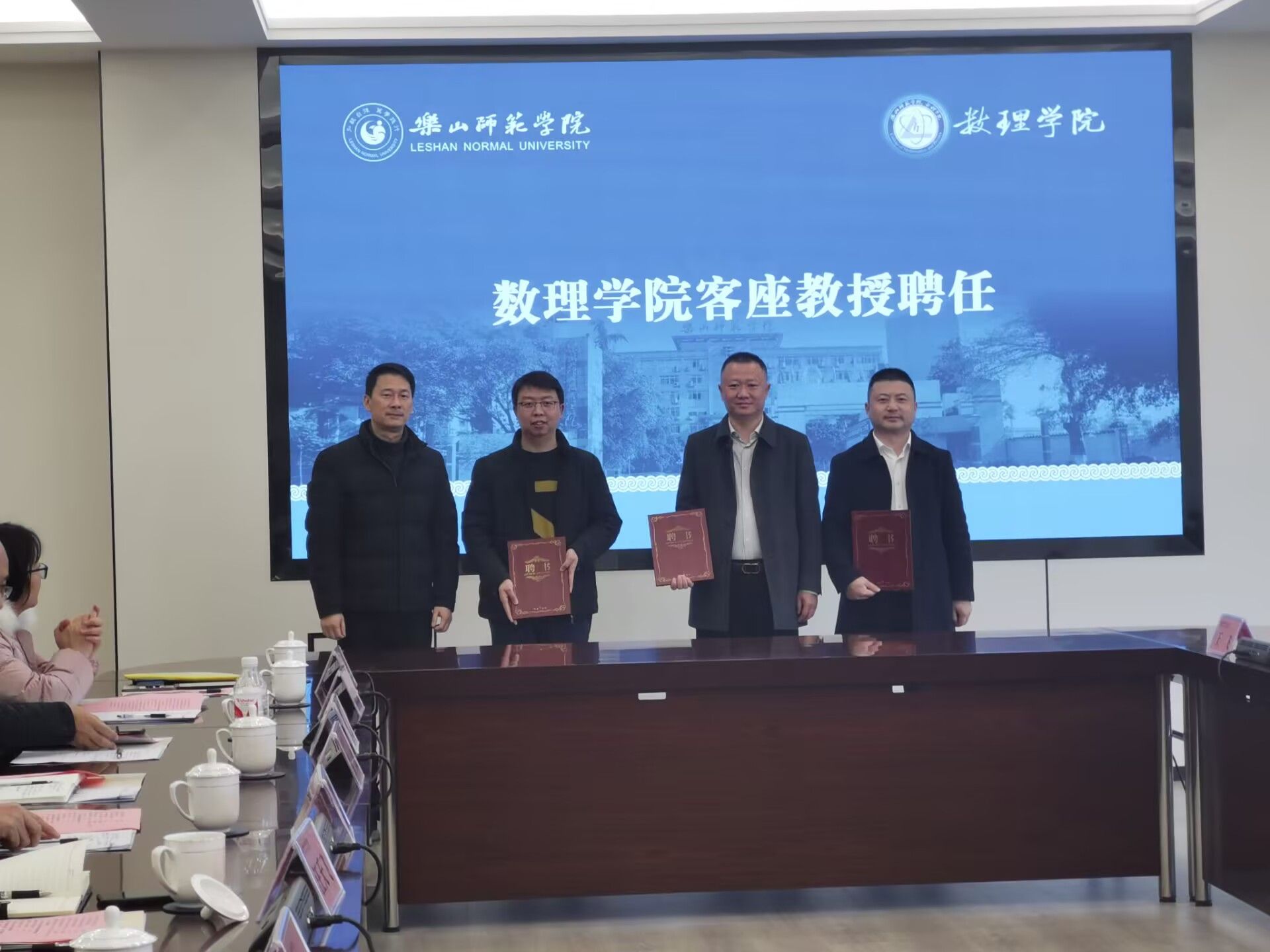乐山师范学院党委常委、副校长汪天飞首先致辞。汪天飞对出席的各位嘉宾表示热烈的欢迎,介绍了学校在教育教学、人才培养、硕士点建设等各个方面取得的成绩,感谢在师范认证和师范生培养过程中各位嘉宾的鼎力支持,希望出席论坛的各位领导和老师为学校未来的发展提供建设性的建议。随后,汪天飞为成都树德中学高级教师李小蛟、峨眉第二中学党委书记邱毅、乐山草堂高级中学校长张伟颁发了乐山师范学院客座教授聘书。