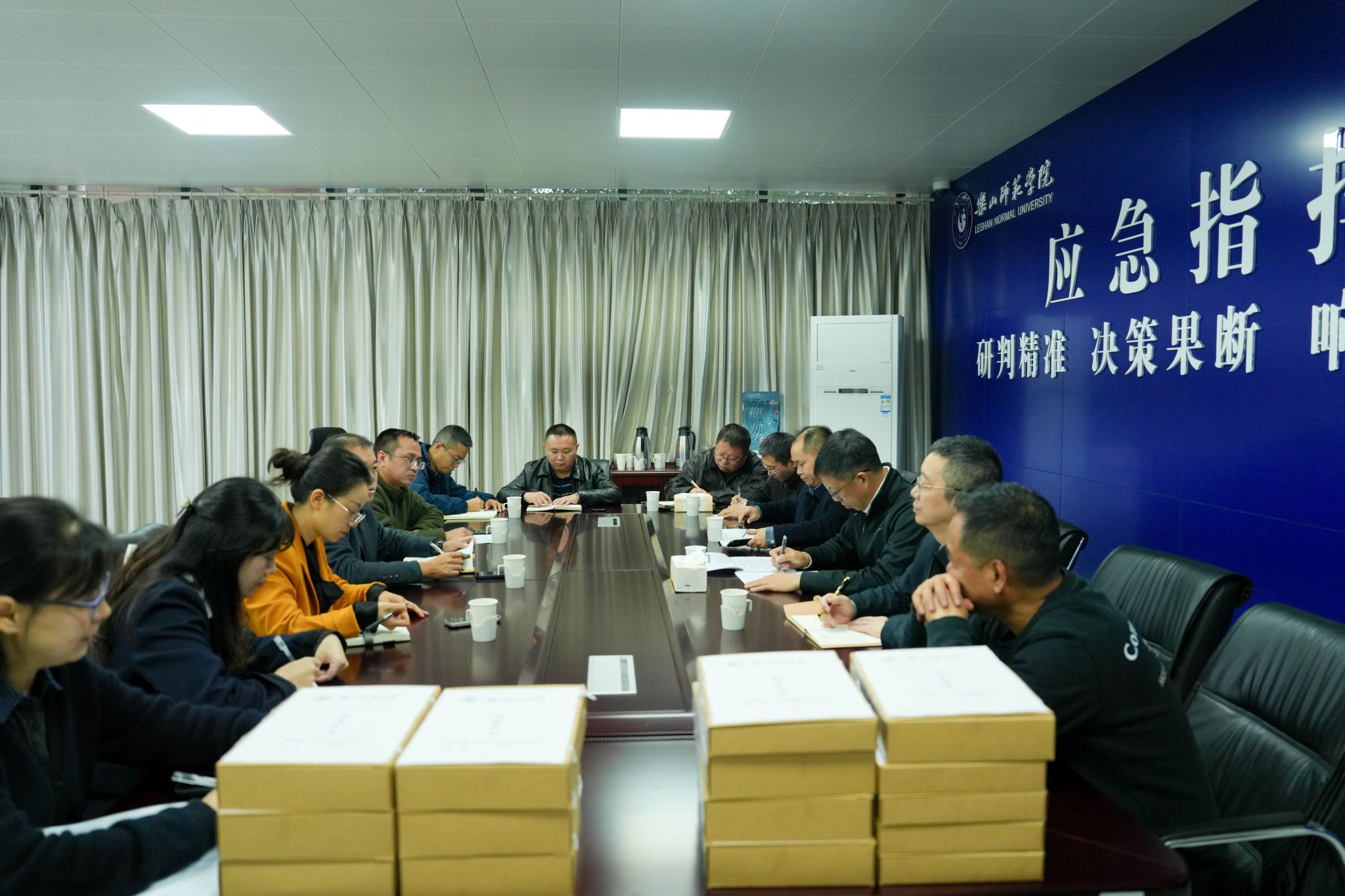 现场检查结束后,检查组在学校应急指挥中心召开座谈会。在听取相关部门工作汇报后,校领导对安全巡查工作进一步提出明确要求。李朝晖强调,安全是学校发展的基石,须臾不可放松。他要求各单位,首先从思想上高度重视,充分认识安全工作的极端重要性;其次要聚焦安全重点工作,在行动上迅速有力,全面自查实验室危化品管理、消防安全、交通安全等重点领域安全隐患,将安全整改作为当前重要任务抓实抓细;最后各部门要及时沟通联动,形成合理,在化解安全隐患和提高应急处置能力要下功夫,确保校园安全稳定。农向在讲话中指出,各职能部门必须将安全责任落到实处,确保做到“三个到位”。一是思想认识到位,要深刻把握校园安全工作的特殊重要性,以高度的责任感主动投入工作;二是责任履行到位,要抓好环境卫生与食品安全等管理,建立完善安全台账,确保问题从发现到整改全程可追溯、形成闭环;三是协同配合到位,各部门须加强联动,打破壁垒,在履职尽责中汇聚合力,共同构建高效的安全防护体系。