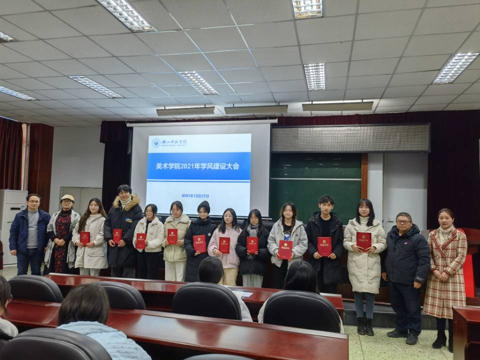本网讯(文/狄倩 图/杨蕾)为进一步加强学风建设,助力学生成长成才,12月17日下午3:00,美术学院于弘毅楼413会议室召开2021年学风建设大会。参加会议的有党总支书记、院长熊泽文,党总支副书记王孝琴,副院长熊火花,副院长陶继锋,教学管理科科长刘建刚,各年级辅导员以及全体学生代表。会议由王孝琴主持。