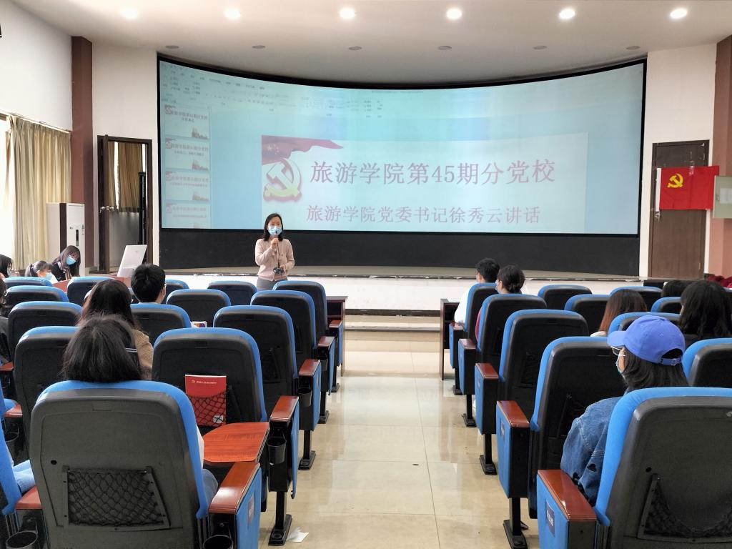 本网讯(文/李慧,图/刘丹) 4月7日中午,旅游学院在学院3D教室举行了第45期分党校开班典礼。出席本次开班典礼有旅游学院党委书记徐秀云、第一学生党支部书记孟凡帅、学生党建中心副主任刘熙雅,第45期分党校学员参加了本次典礼。