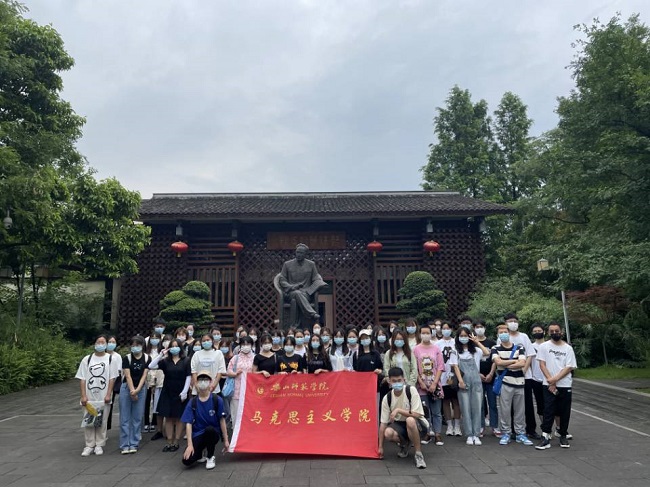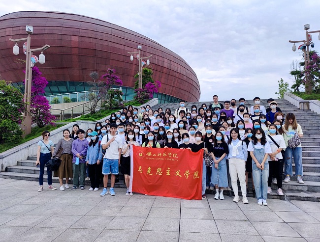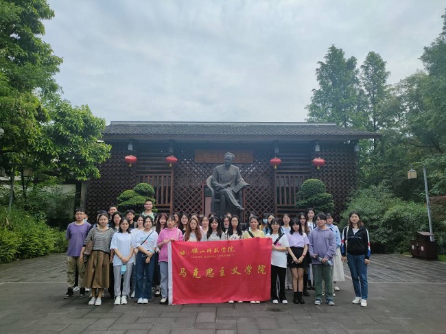 本网讯(文、图/黄潇亿)5月11日上午,马克思主义学院组织2019级、2020级学生前往郭沐若故居和戏剧小镇开展实践周特色活动。