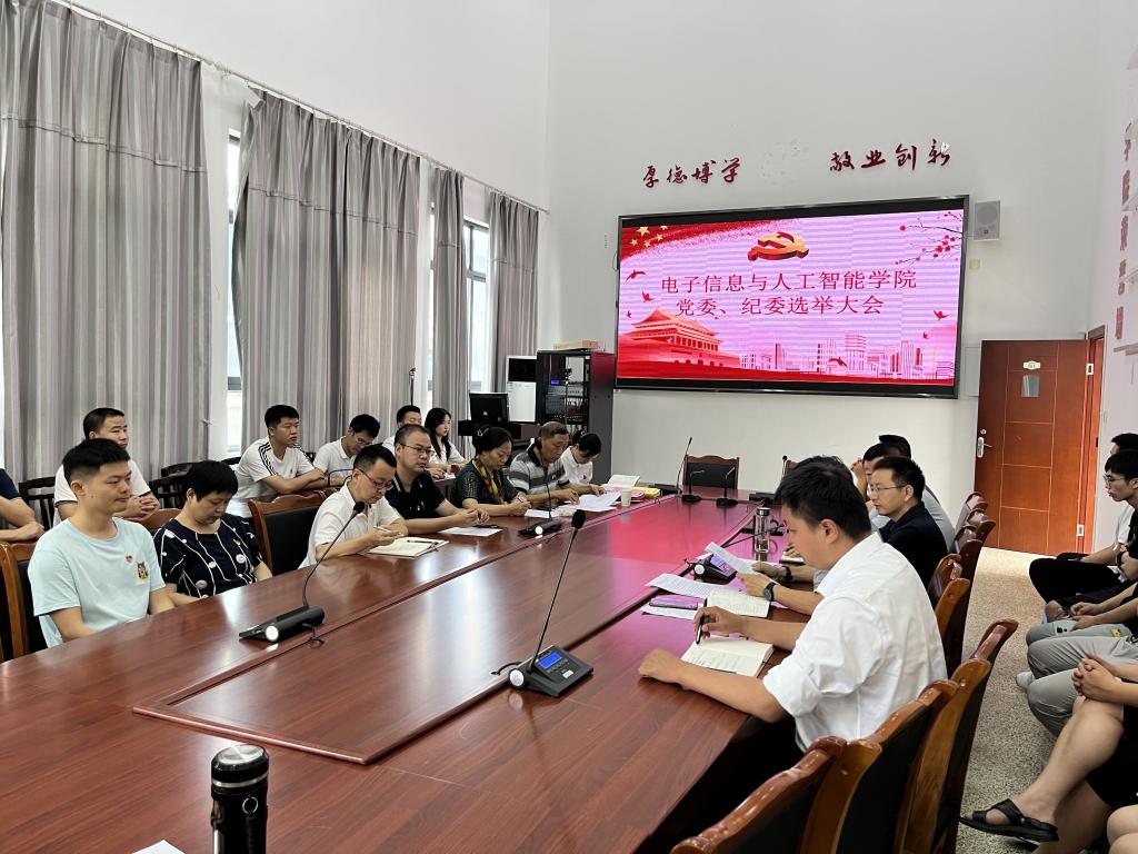 本网讯(文、图/雷雄锴)近日,电子信息与人工智能学院于特教C501召开党员大会暨学院党委和纪委委员选举大会。电子信息与人工智能学院党委书记蒋强,院长金澎等领导班子成员和74名师生党员参加大会,会议由蒋强主持。