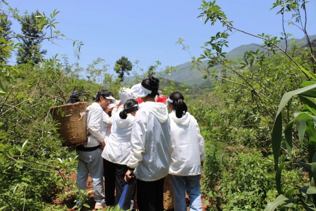 清晨,沐浴着初升的朝阳,支教学生们来到了附近的花椒林,开始了长达四个小时的采摘。一开始,部分支教学生没有采摘花椒的经验,采摘手艺不熟,采摘速度较慢,但在当地农户的指导和帮助下,他们渐渐掌握了采摘技巧,采摘速度有所提升。