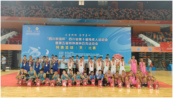 (文/王振洲 图/卿万余、唐绮)8月21日,随着比赛结束的哨音吹响,四川农信杯”省第十届残运会暨第五届特奥会特奥项目篮球(男)比赛在乐山市奥体中心圆满落幕,并举行了颁奖仪式。