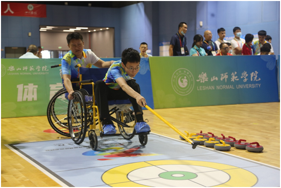 (文/王振洲 图/樊庚、卿万余、唐绮)四川农信杯”四川省第十届残疾人运动会残运旱地冰壶比赛于8月21日—23日在乐山市奥林匹克体育中心举行,本项比赛有来自18个市(州),共18支球队参赛。8月23日下午,经过各代表队3天的分组循环赛和决赛淘汰赛激烈角逐,本届残运会旱地冰壶赛事圆满结束,并在乐山市奥体中心羽毛球馆举行了颁奖仪式。