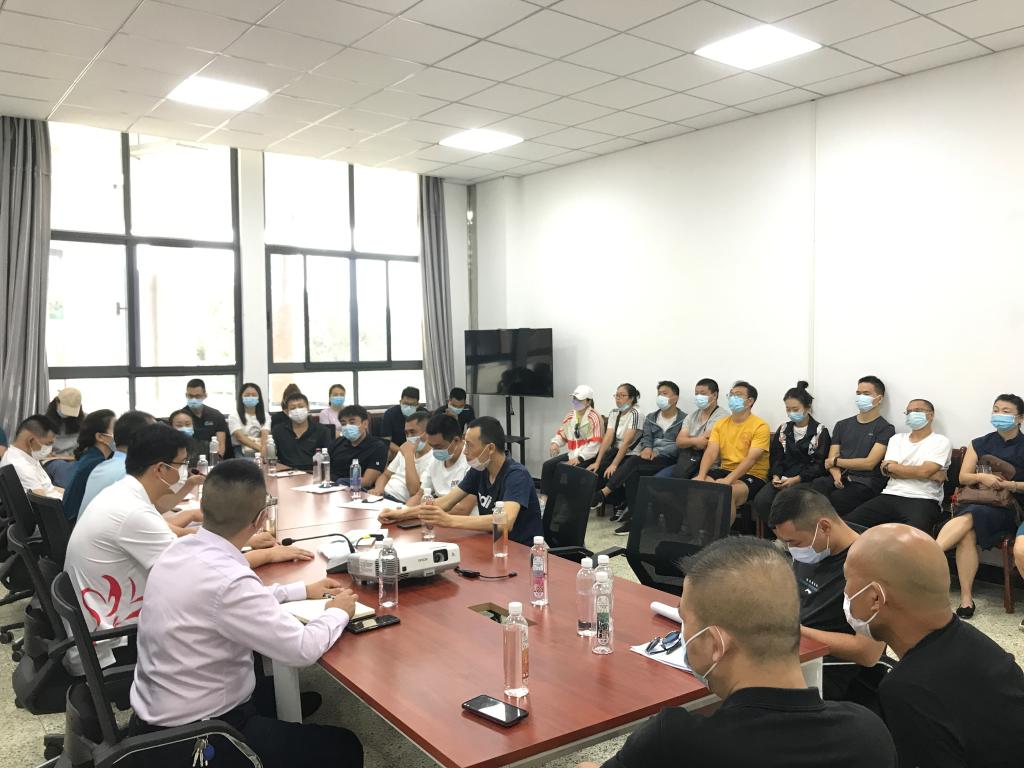会上,张峰首先总结了假期工作情况,如:圆满完成了四川省第十四届运动会篮球、排球2个大项8个小项的比赛,得到了省市领导高度评价,组委会还专门致信感谢;啦啦操和跆拳道参加线上比赛均取得优异成绩;场馆维修也在进行中。接下来,通报了学校疫情防控工作的要求,结合我院实际情况,他强调,坚持疫情不除、防控不歇的原则,希望大家绷紧一根弦,做好开学、返校时的疫情防控及线上教学工作。