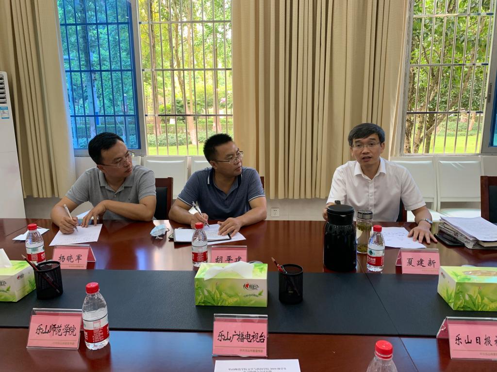 本网讯(文、图/杨阳、齐虎)9月2日上午,文新学院新闻、网新专业集中实习协调会在乐山市委宣传部会议室召开,标志着乐山师范学院和乐山市委宣传部共建新闻学国家级一流本科专业的工作正式拉开了序幕。乐山市委宣传部副部长夏建新、文新学院副书记胡平建、副院长杨晓军、学校教务处实践教学科刘夏及市委宣传部新闻科、干部科、乐山市级媒体相关负责人参会,会议由夏建新主持。
