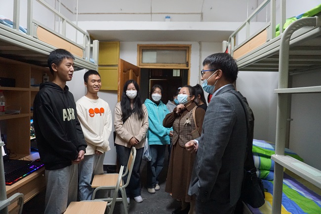 本网讯(文/肖雨蕾,图/刘丹)10月11日晚上,旅游与地理科学学院党委书记徐秀云、院长郭建英、党委副书记、纪委书记冉勇、副院长但强分别带队,各年级辅导员及新生代理班主任一起走访了新生宿舍,对新生表示亲切关怀。