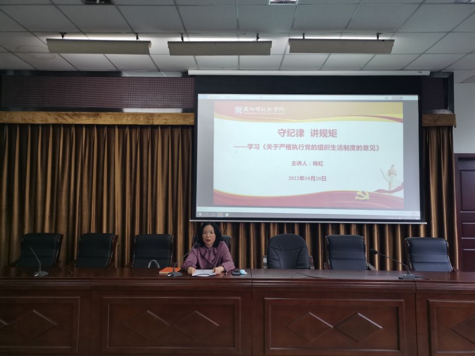 杨虹向全体教职工党员作了《守纪律 讲规矩——学习<关于严格执行党的组织生活制度的意见>》的专题党课,强调了组织生活的严肃性和规范性,要求各党支部严格执行党的组织生活制度,落实好“三会一课”制度,强调全体党员要积极参与组织生活,严格遵守党纪党规。