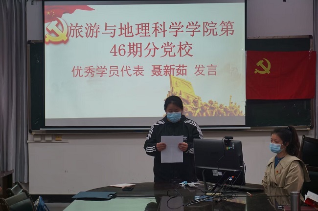 本网讯(文/陈猩悦 图/喻山)为肯定入党积极分子的学习成效,表彰优秀学员,12月9日,旅游与地理科学学院于旅院楼102教室举行第四十六期分党校结业典礼,参加结业典礼的有学院党委委员、副院长但强,学院专职组织员孟凡帅以及第四十六期全体入党积极分子。