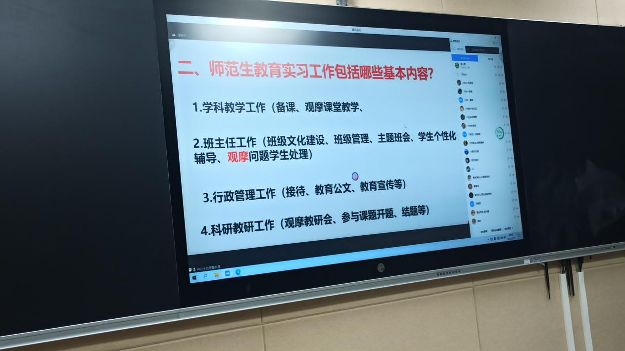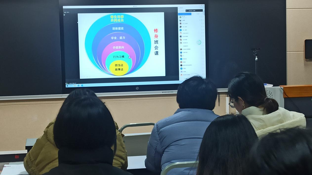 随后,成都棠湖外国语学校德育主任孙晓晖在线分享了其20余年班级管理的实践与研究成果《修身班会课的魅力》。她的修身班会课以全体学生“全员担当”、自主参与班级管理、自我教育为特色,教师采用故事法(德育叙事)引导学生养成良好的行为习惯、形成优秀的思想品格。她的讲座为实习生提供了可借鉴的班级管理经验与范式。