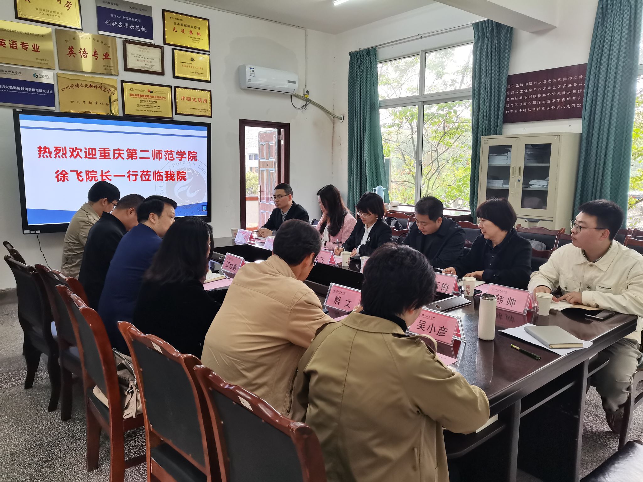 本网讯(文/徐波 图/李英)4月6日上午,重庆第二师范学院外国语学院院长徐飞一行到外国语学院考察交流。外国语学院全体领导班子、教学督导汤红娟教授参加了本次交流。
