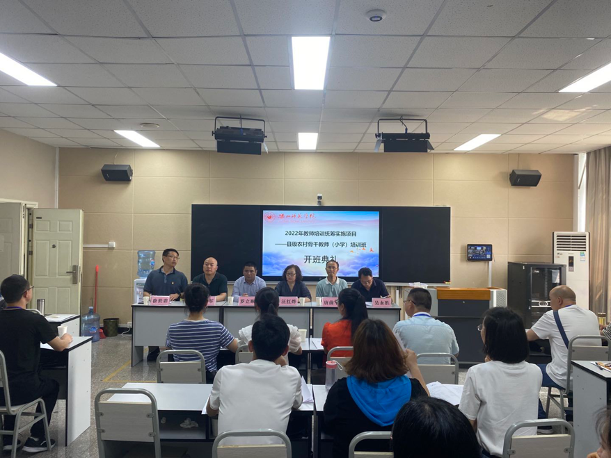 本网讯(文/常燕林 图/苟霜)4月17日上午,四川省2022年“国培项目”市(州)统筹实施项目——县级农村骨干教师培训开班典礼在弘毅楼504B教室成功举行。教育科学学院院长兼国培首席专家汪红烨,党委书记罗立顺,党委副书记兼纪委书记何晓军,副院长徐世鼎、唐前军,教学班主任吴永胜、魏阳灿,生活班主任钟小婷及40名学员参加了此次开班典礼。开班典礼由徐世鼎主持。