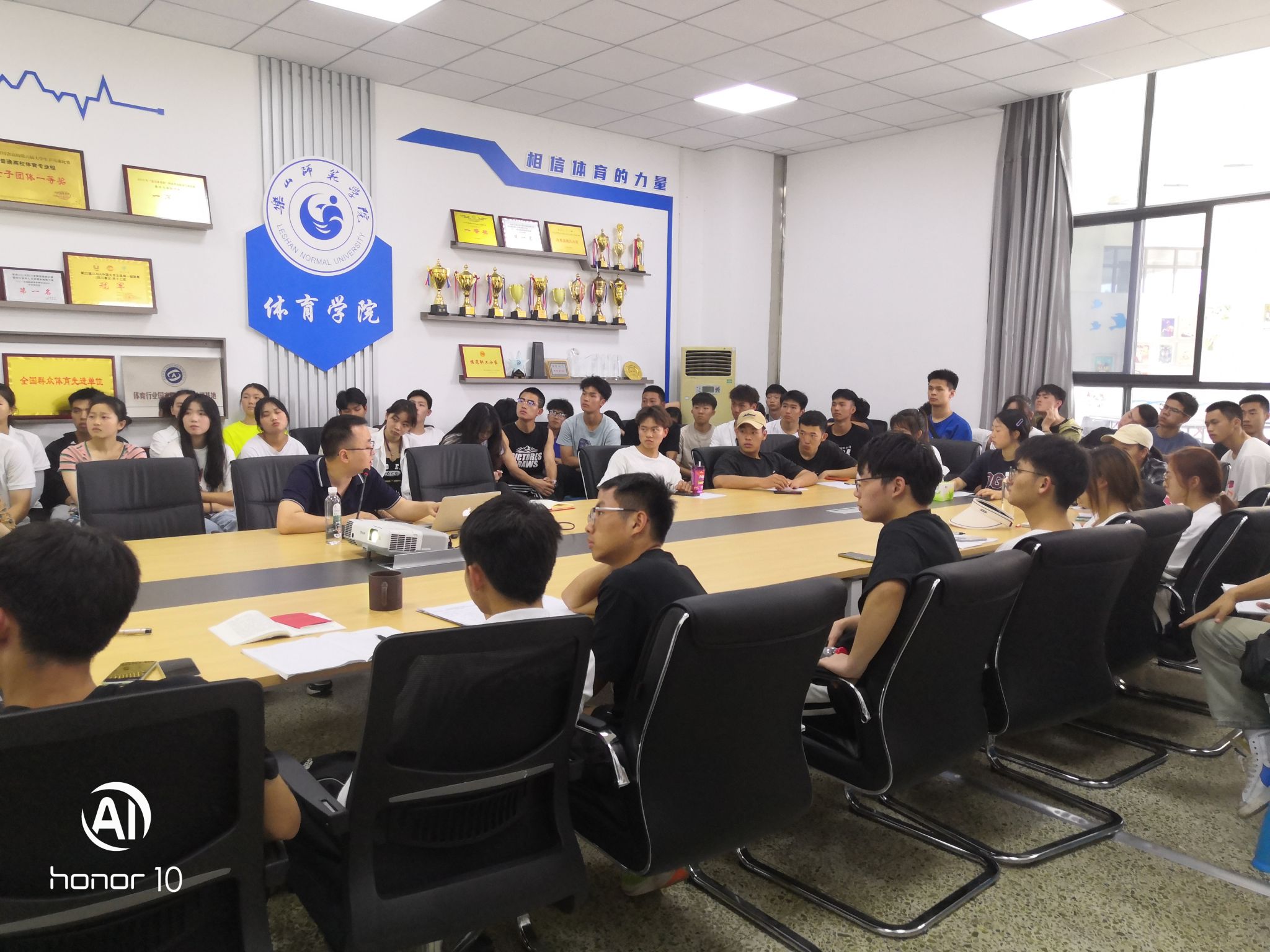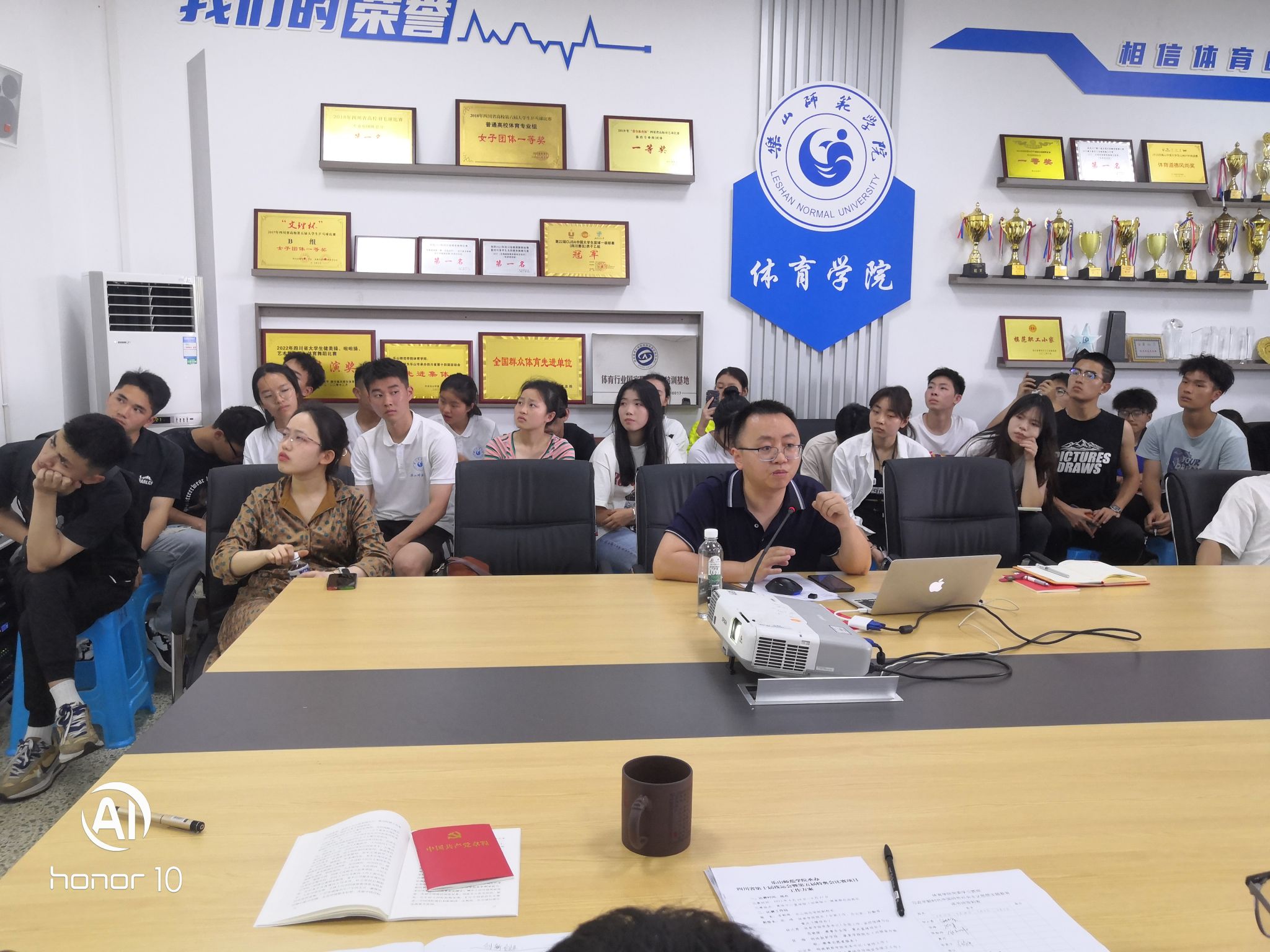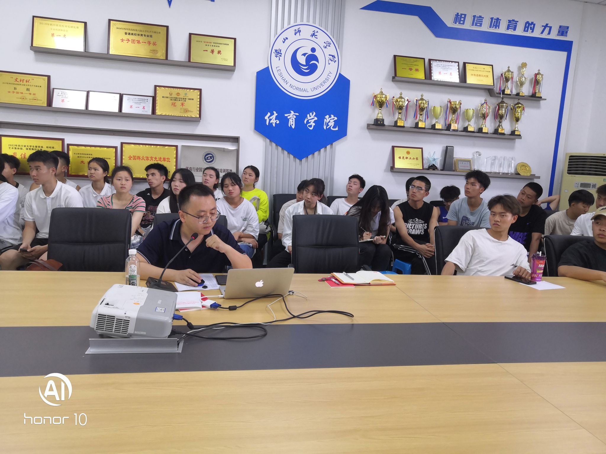 本网讯(文/杜小敏 图/郭傲雪)4月18日,体育学院在学院会议室召开本年度 “大学生创新创业训练计划项目”申报工作培训会,会议邀请双创学院蒋冲雨老师做专题培训,学院22级、21级申报项目负责同学参会,会议由学院党委副书记陈勋玮主持。