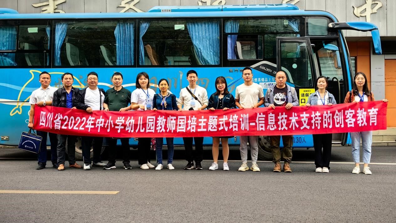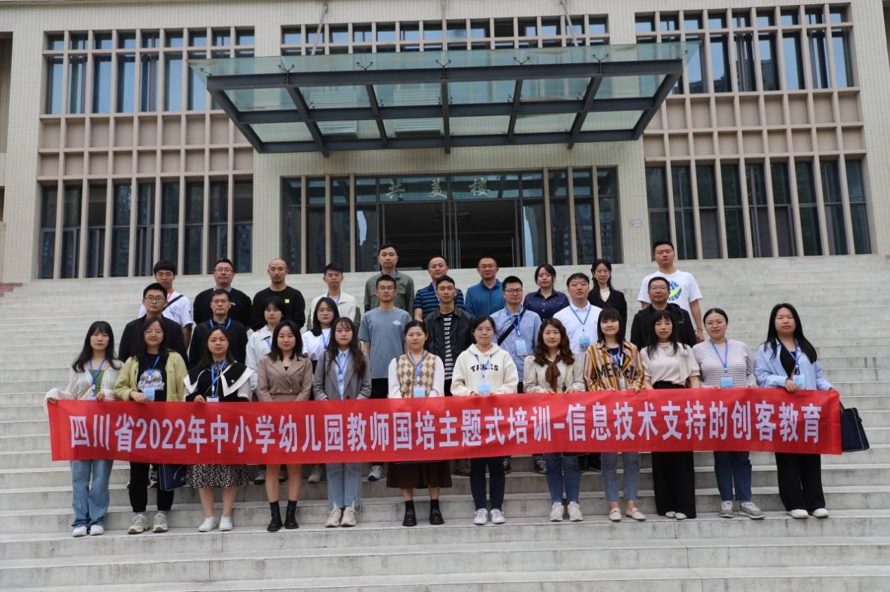 本网讯(文/高明睿 图/陈圣)近日,乐山师范学院电子信息与人工智能学院组织四川省中小学幼儿园2022年“国培计划”信息技术支持的创客教育第二期110名学员分别到乐山师范附小、乐山徐家扁小学、乐山嘉州学校、乐山艺术实验学校开展研学活动。电子信息与人工智能学院副院长黄果、信息技术教研室主任秦洪英、班主任刘毅、项炜、谭红梅以及9名志愿者参与了此次带队及服务工作。