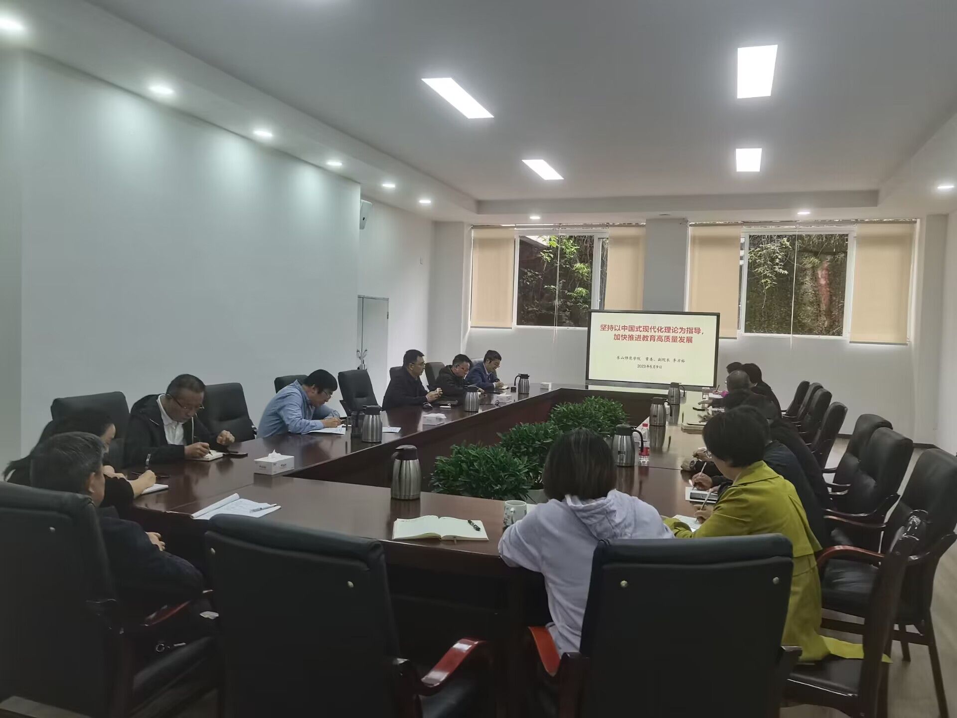 本网讯(文/杨文霞 图/李松柏)根据学校党委关于深入开展学习贯彻习近平新时代中国特色社会主义思想主题教育的安排部署,为达到“学思想、强党性、重实践、建新功”的总要求,5月9日,学校党委常委、副校长李方裕作了题为“坚持以中国式现代化理论为指导,加快推进教育高质量发展”的专题党课。学科建设与发展规划处、校地合作处、国际合作与交流处、采购与招标中心、音乐学院等部门党员教师代表参加学习。