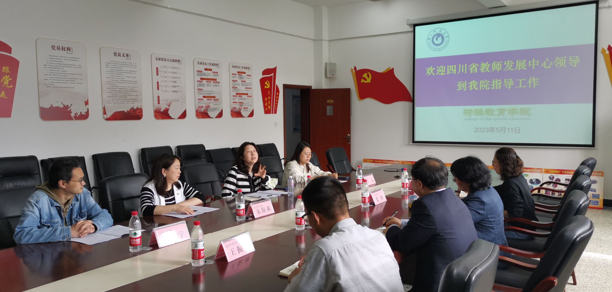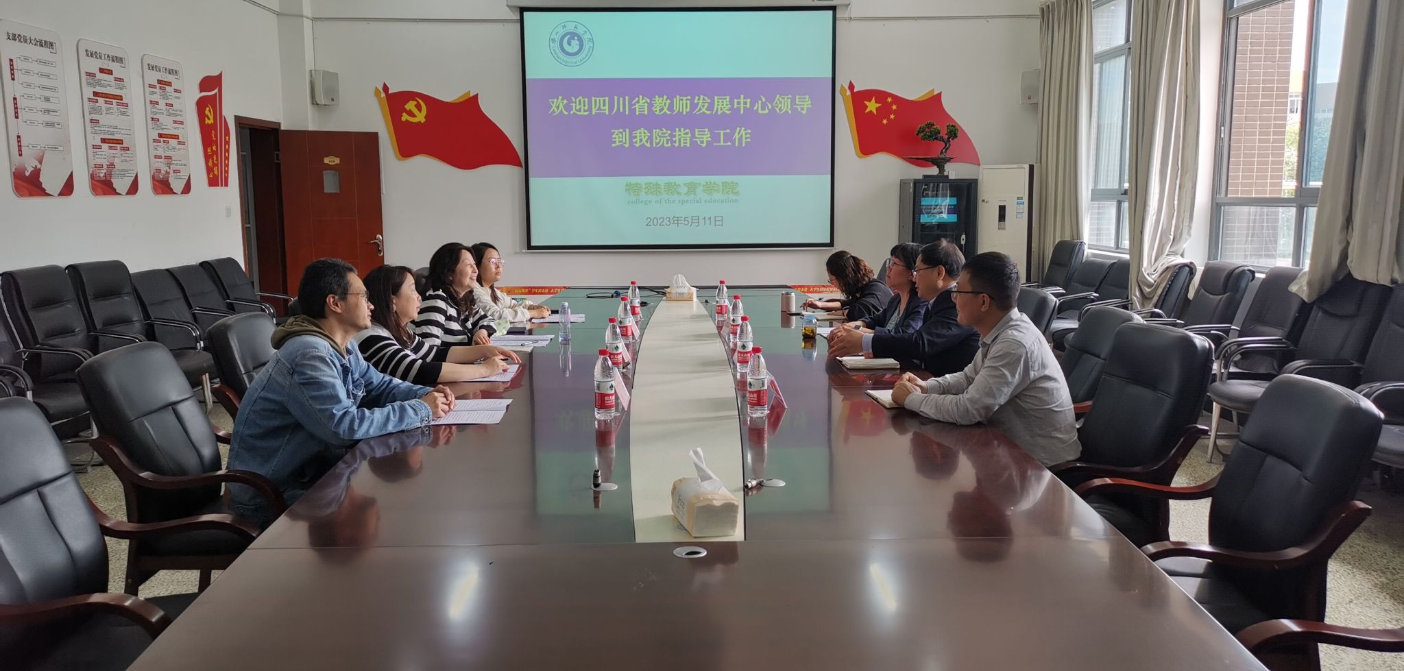 本网讯(文/王振洲 图/张敏)5月12日上午10:00,四川省教师发展中心米晓梅主席一行4人来我校指导工作。学校教师教育学院院长罗明礼,特殊教育学院院长张梅、副院长魏欣、院长助理王振洲参加了座谈会。会议由张梅主持。