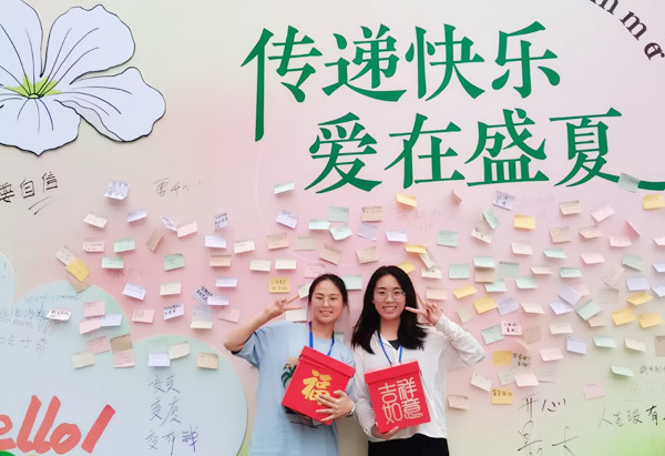 本次活动包括了“说说烦心事”“应对坏情绪”“感受爱、表达爱”“爱与希望”“未来皆可期”几个环节,同学们写下自己的烦恼和困惑,接受来自朋辈的鼓励,用小游戏的方式赶走压力和坏情绪,并和身穿可爱人偶服的同学合影。在此期间,同学们分享了所经历的温暖瞬间,正视并点燃了心里积极向上的正能量。最后,大家在明信片上写下自己的愿望、对自己的鼓励、寄语等,投入“未来”信箱,向过去的烦扰告别,展望璀璨的未来。