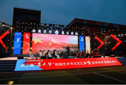 本网讯(文、图/周露蓉)5月25日晚7:30,我校青年交响乐团赴乐山嘉祥外国语学校,参加该校第三届“夏之梦”校园艺术节文艺汇演,与美设学院、体育学院代表学校与乐山嘉祥外国语学校进行了校外美育、体育实践基地授牌仪式。