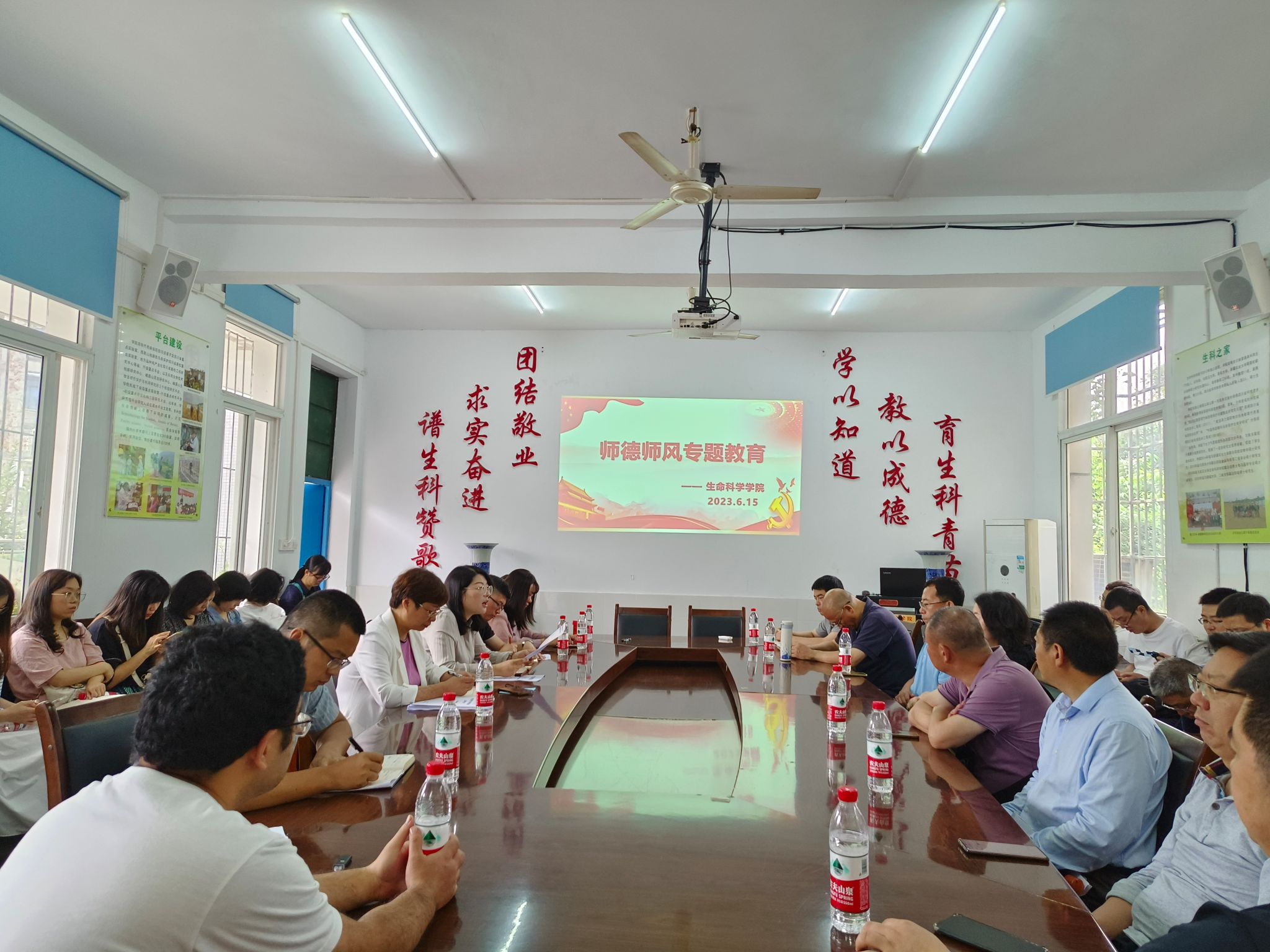本网讯(文、图/易秀琴)为进一步推进学院师德师风建设工作,6月15日下午,生命科学学院组织全体教职工在博雅楼一楼会议室开展师德师风专题教育活动,活动由学院党委书记杨益主持。