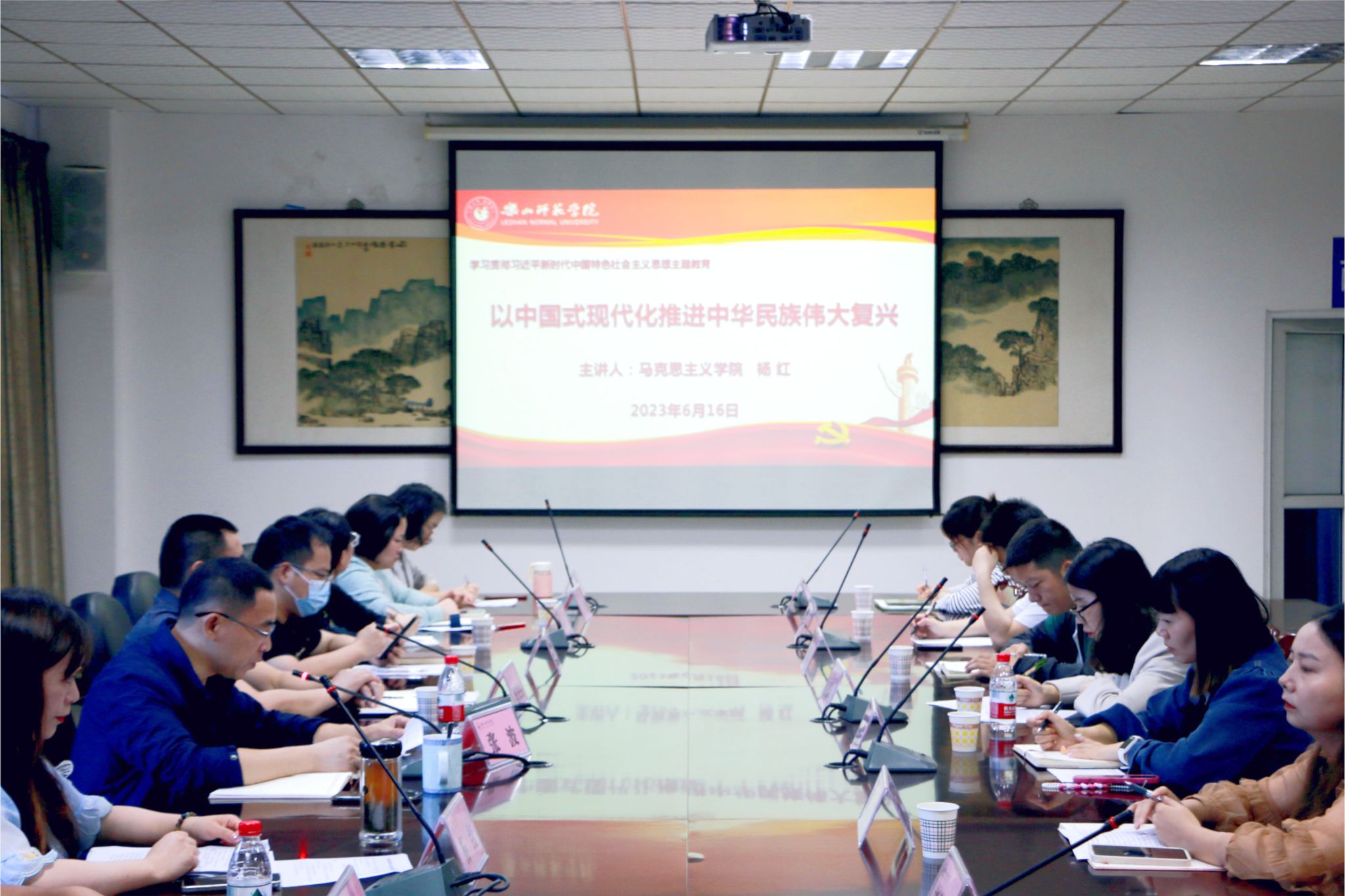 会上,学工部、马克思主义学院负责人及马克思主义学院思政课教师代表、各教学院辅导员代表一同观看了学校宣传片《前行》。随后,马克思主义学院专任教师杨红做了“以中国式现代化推进中华民族伟大复兴”的主题宣讲,并提出思政课程应重视生活德育和思政目标,要从培养良好公民提升到培养能够担当民族复兴大任的时代新人。