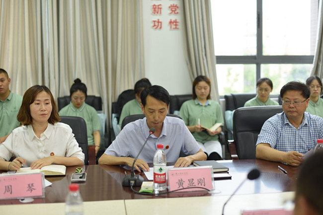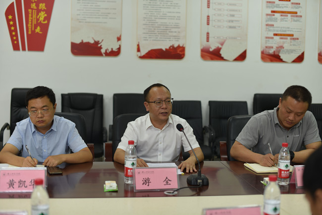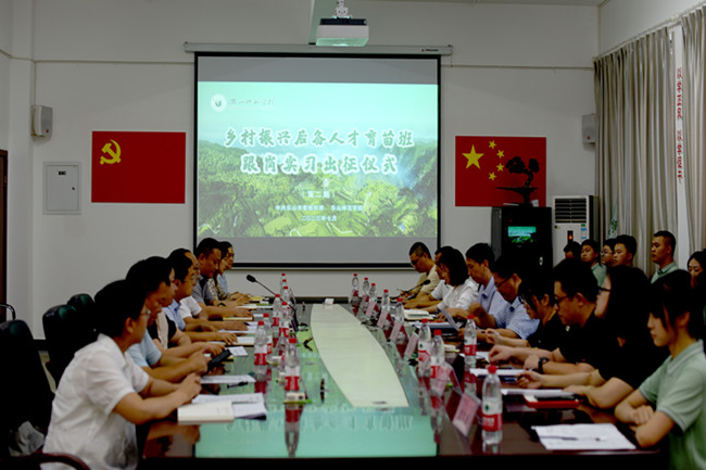 本网讯(文、图/范雨薇)7月3日下午,学校在特教大楼A区408会议室举行“乡村振兴后备人才育苗班”第二期跟岗实习出征仪式。乐山市委组织部副部长、市委党建办主任、市委两新工委书记游全,学校党委学生工作部部长黄显刚出席出征仪式并讲话,市委组织部组织三科科长简凯、相关县(市、区)委组织部领导及负责同志,学校教师教育学院执行院长罗明礼、教学部副部长刘瑶瑶、教学院辅导员代表及“育苗班”第二期跟岗实习学员参加出征仪式,会议由学校党委组织部副部长周琴主持。