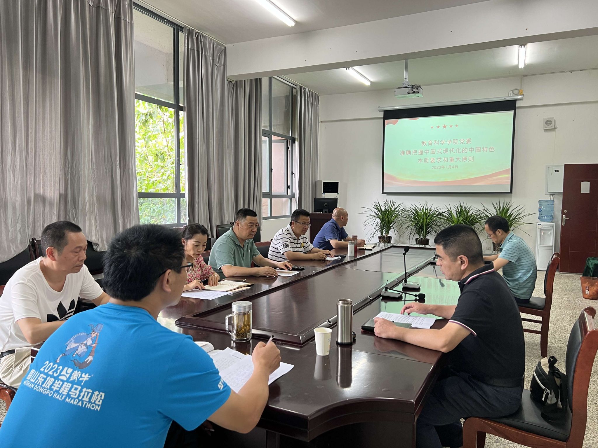 会前,成员们围绕学习主题认真开展自学,撰写心得体会。上午围绕“准确把握中国式现代化的中国特色、本质要求和重大原则”专题,开展集中学习和专题研讨,深刻认识中国式现代化是党领导全国各族人民在长期探索和实践中历经千辛万苦、付出巨大代价取得的重大成果,我们必须倍加珍惜、始终坚持、不断拓展和深化。大家一致表示未来五年,是中国全面建设社会主义现代化国家开局起步的关键时期,需要我们在以习近平同志为核心的党中央集中统一领导下,同心同德,稳中求进,开好局,起好步,为全面建设社会主义现代化国家奠定坚实的基础。要用习近平新时代中国特色社会主义思想培根铸魂、启智润心,创新红色文化育人模式,深入挖掘伟大建党精神、延安精神等红色资源的特殊教育价值,推动“四史”教育常态化、制度化、时代化,从而把社会主义核心价值观切实转化为青年大学生的日常行为准则,培养堪当民族复兴重任的时代新人。