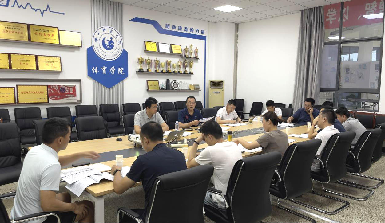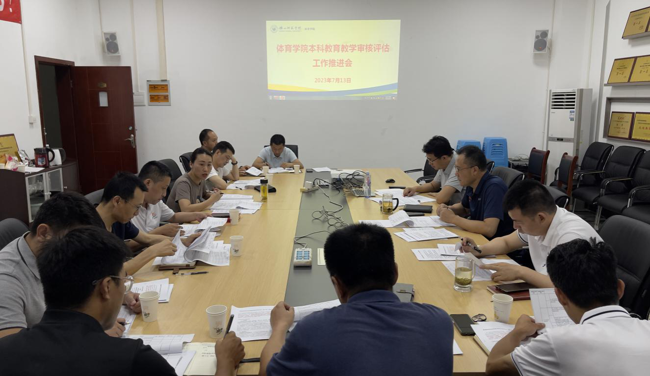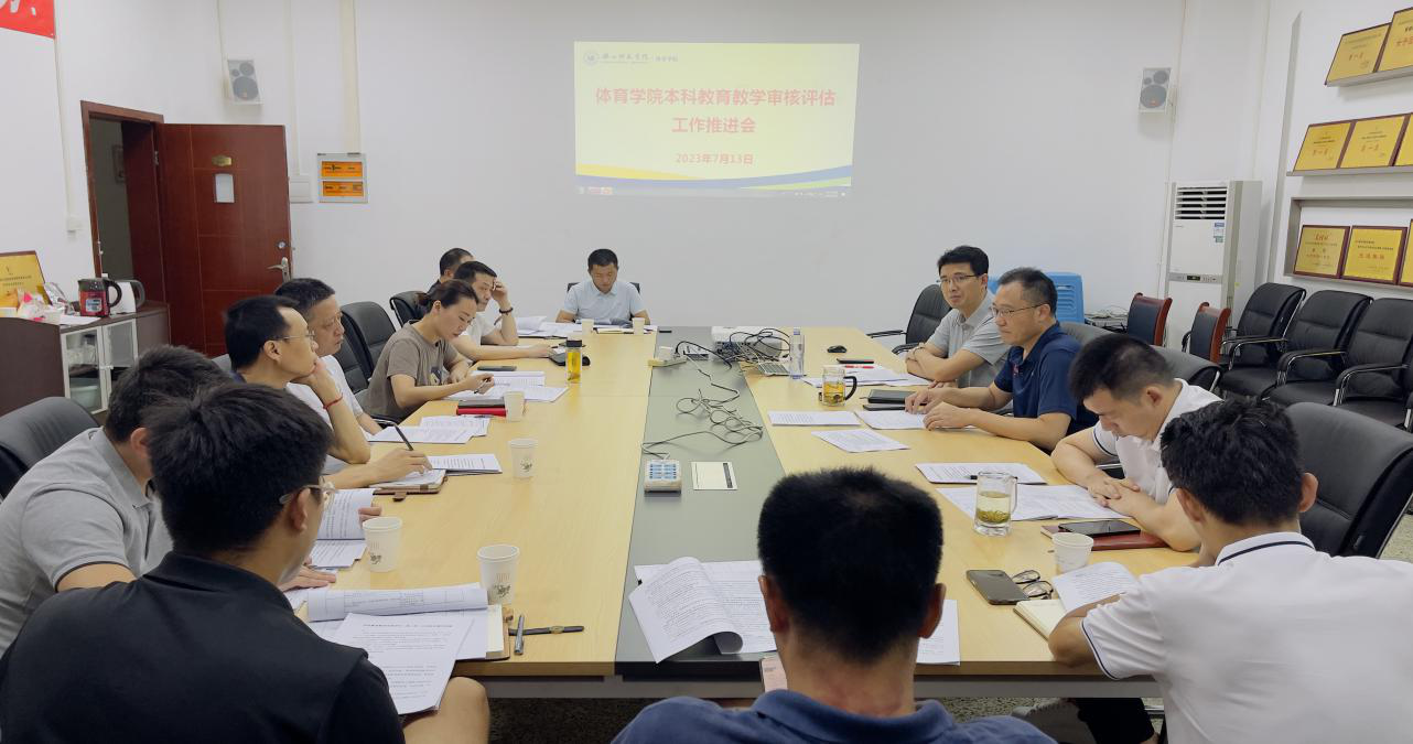 (本网讯 文/图、裴庚)为切实做好本科教育教学审核评估工作,7月13日,体育学院在会议室召开本科教育教学审核评估工作推进会。体育学院院长张峰、学院党委书记钟大勇、副院长张爱平、体育教育专业负责人鲁长春、社会体育指导与管理专业负责人王志刚、休闲体育专业负责人宋海宾、教学与科研管理办公室主任邹勋以及各专业教研室主任参加了此次会议,会议由张峰主持。