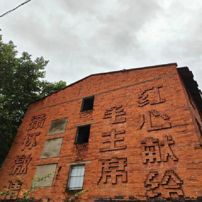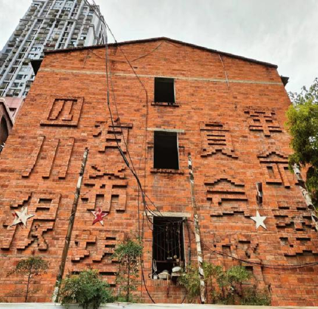 实践活动的第一站,团队成员们来到了绵阳市跃进路。当日的蒙蒙细雨并未影响团队成员们的热情。如今的跃进路,人来人往,车水马龙,无不体现城市的现代化气息。但在涪江有线电厂的“百号楼”上,“满怀激情”“红心献给毛主席”“四川很有希望”的标语在外墙上熠熠生辉,静悄悄地诉说它的历史故事。跃进路的发展历史虽然不到七十年,但却是一段辉煌的历史。如今的跃进路,成为了1958历史文化街区,她经历过三线建设城市的历史变迁;见证了投身于三线建设青年的血脉赓续;担负着传承三线建设精神的历史重任。在这次实践中,团队成员探索了跃进路的历史进程、历史精神和历史传承等方面的内容,被三线建设时期自力更生、坚韧不拔和团结合作等精神深深感染。
