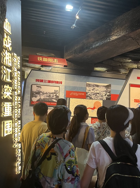 在湘江战役纪念馆,老师们了解到,湘江战役是关系中央红军生死存亡的一战,是中央红军突围以来最壮烈、最关键的一仗,粉碎了蒋介石围歼红军于湘江以东的企图。 红军虽然突破了第四道封锁线,但付出了巨大的代价,由出发时的8.6万人锐减到3万人,老百姓用“三年不饮湘江水,十年不食湘江鱼”来形容湘江战役的惨烈。